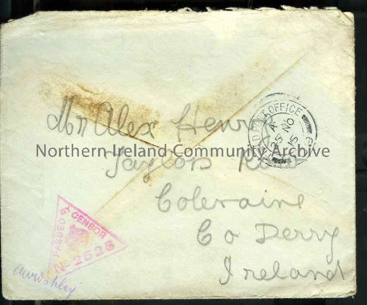 Pale addressed envelope with red censor stamp