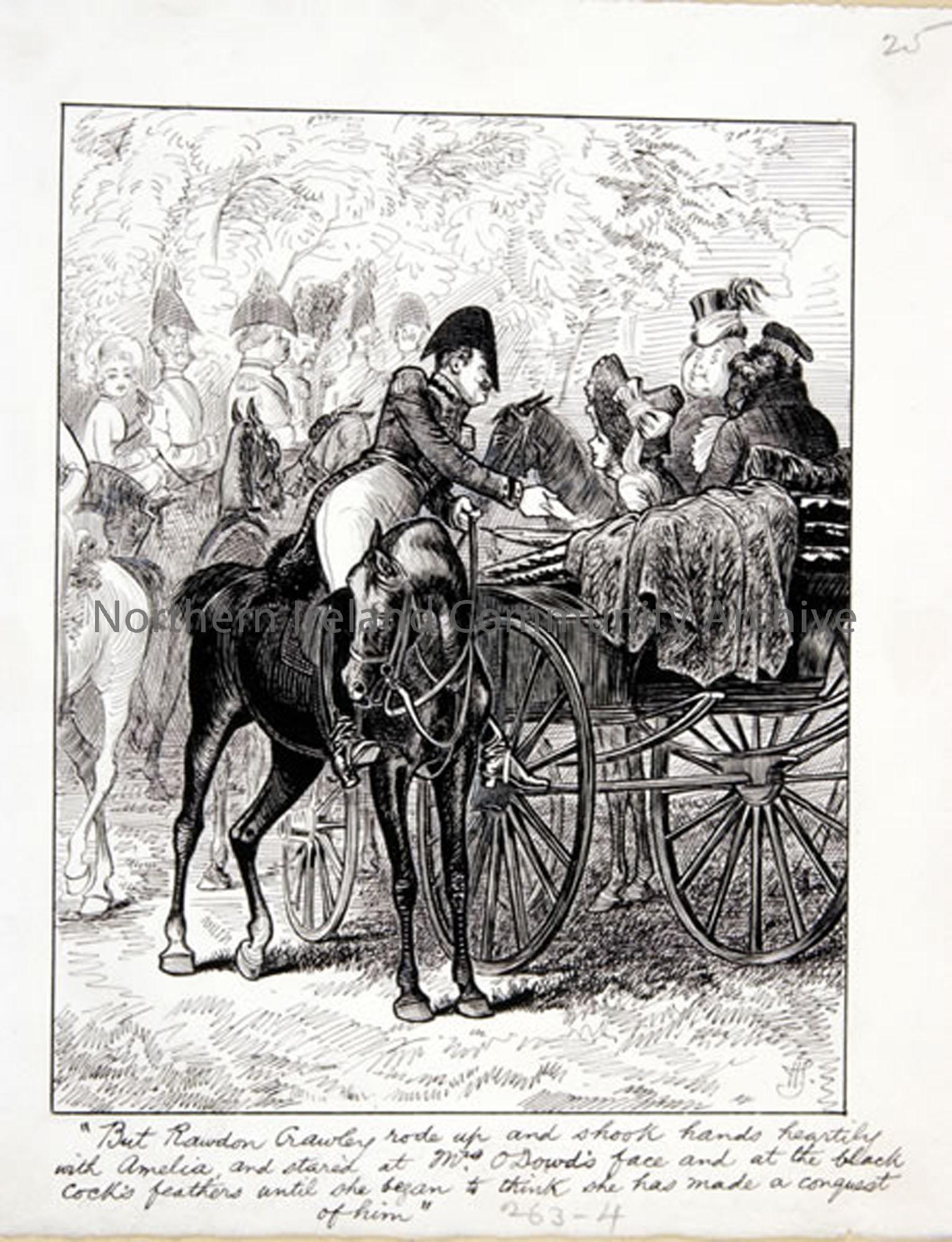 Pen and ink drawing by Hugh Thomson for Vanity Fair by William Makepeace Thackeray (6851)
