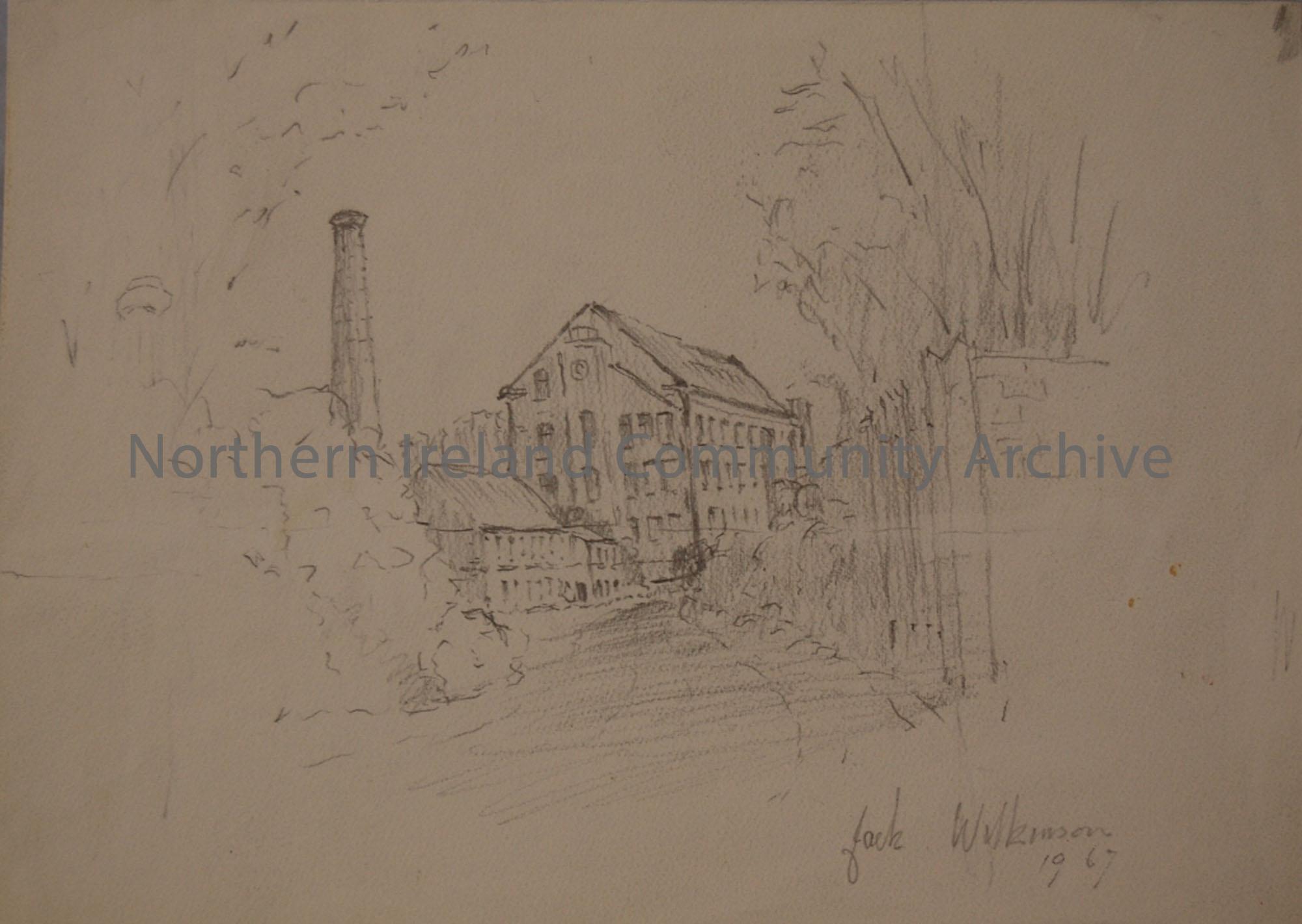 Pencil sketch of Balnamore Mill, Co. Antrim by Jack Wilkinson
