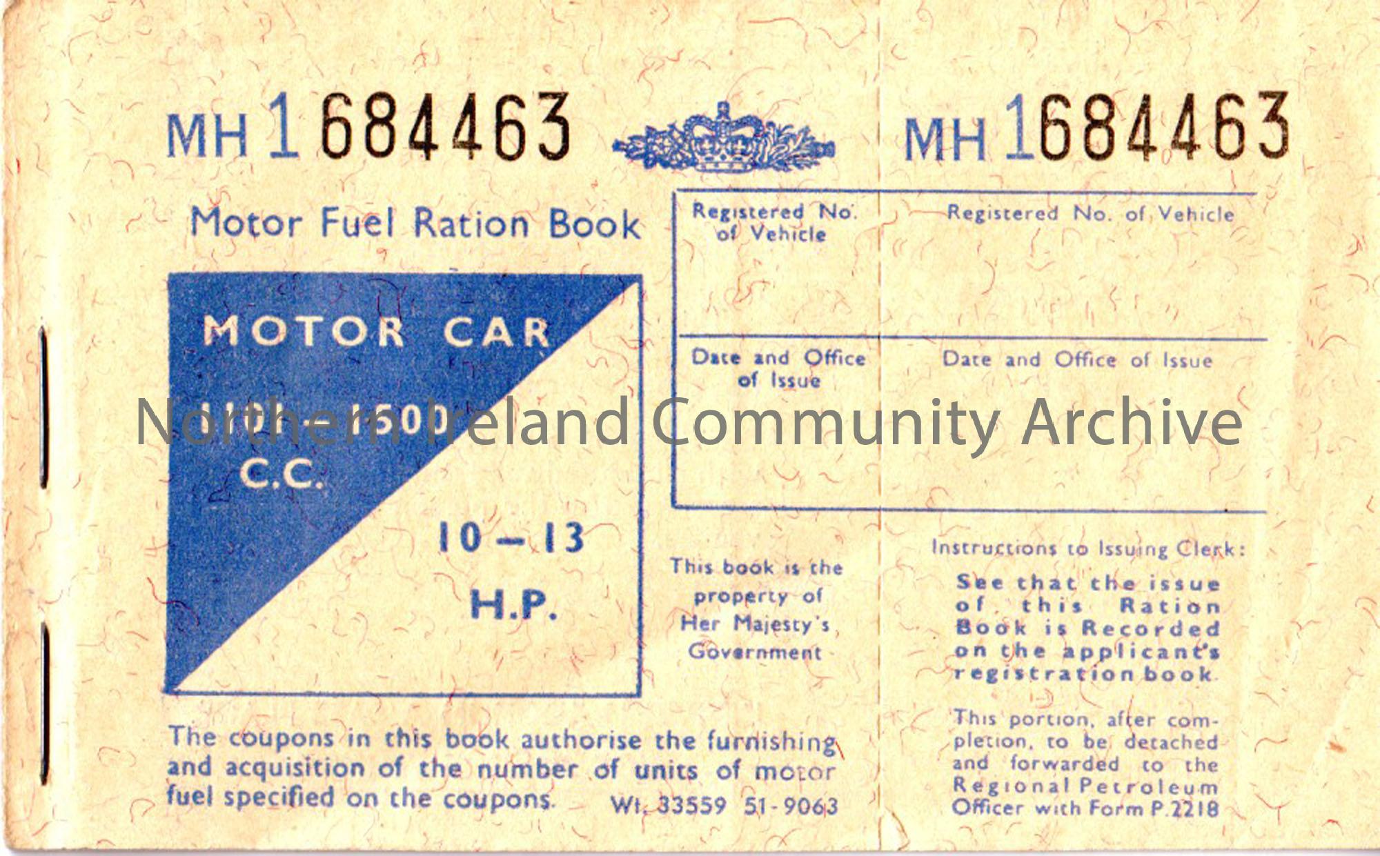Petrol ration book assigned to Thomas William Johnston for a motor car 1101-1500 C.C