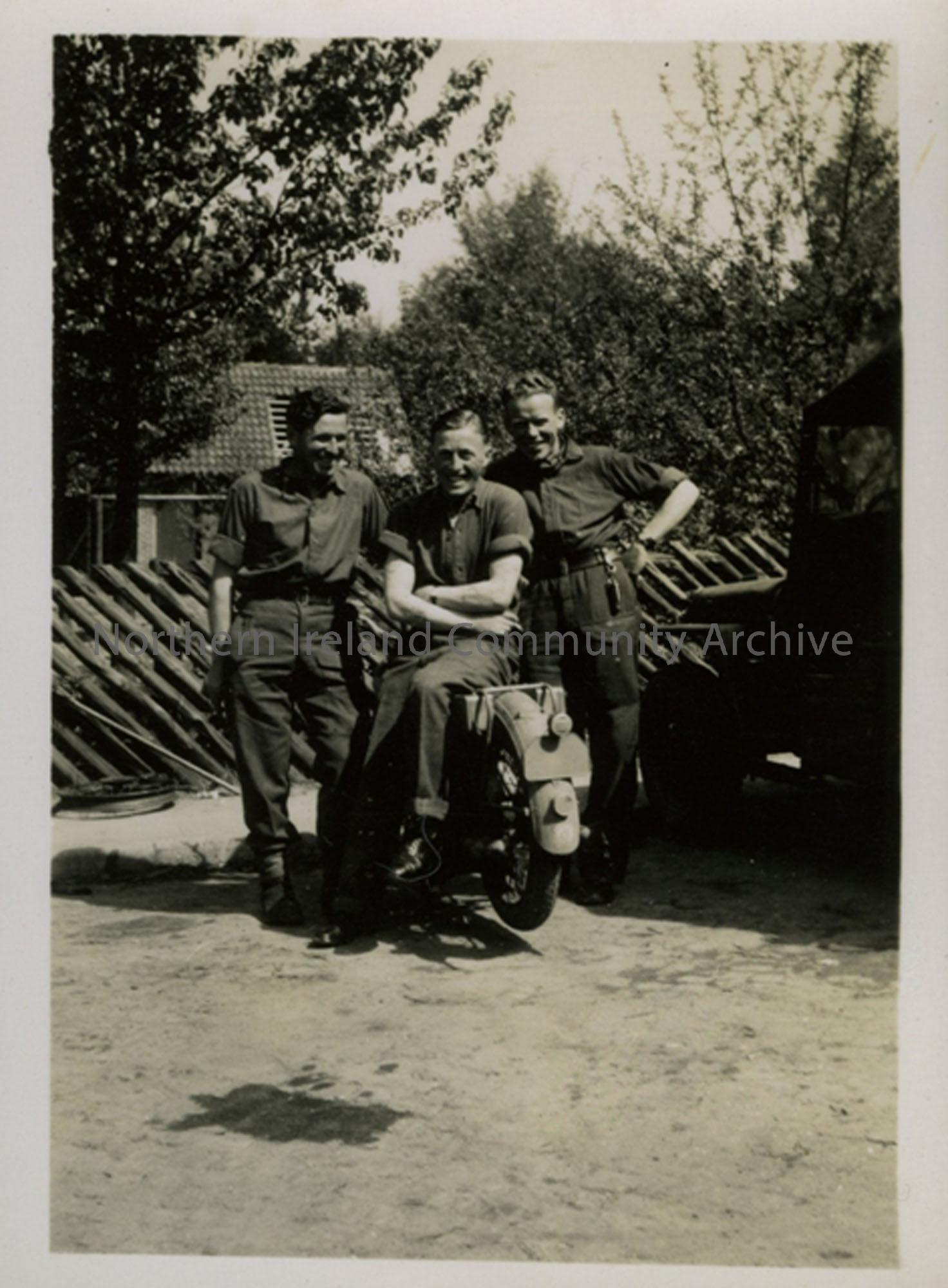 3 soldiers. J Hamill; T Henry (perched on the motorbike) and Allan Thompson.