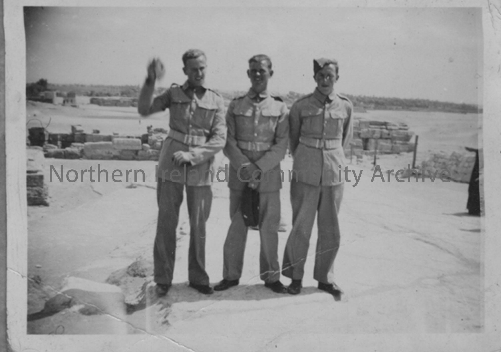 Group of 6th Light Anti-Aircraft Battery soldiers in desert land posing in front of a large tent