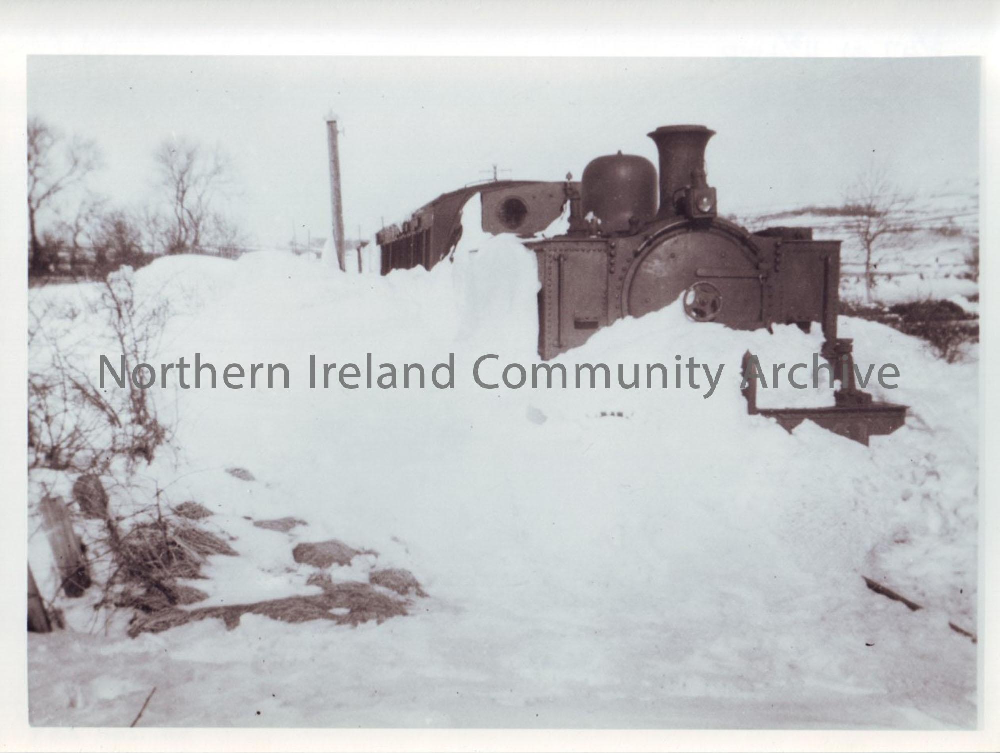 Photograph of Ballycastle to Ballymoney train stuck in the snow near milepost 11 3/4 March 1947. Engine No.41.