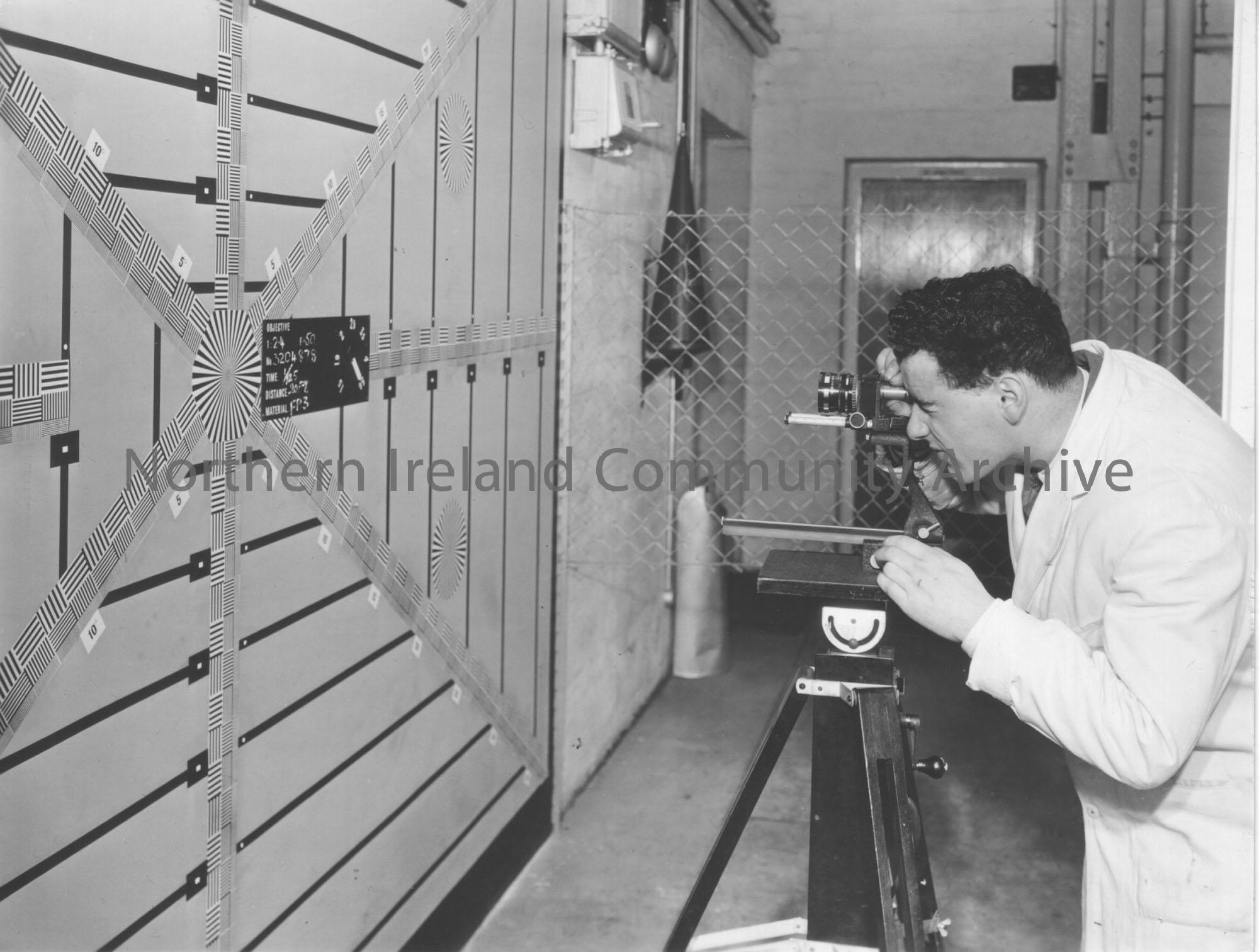 Photograph of checking lens resolution- Wall chart also used to provide photograph neg proof if required-Jack Graham testing lens