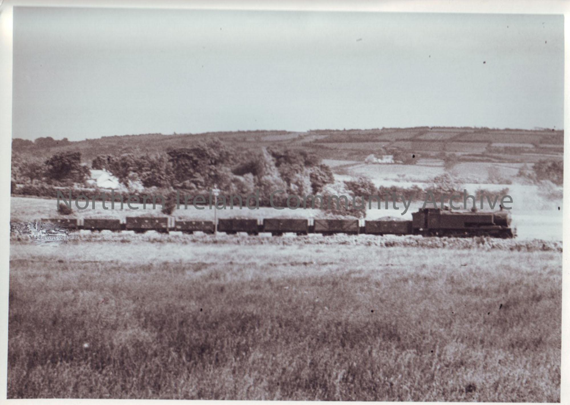 Photograph of coal train near Ballyboley junction in 1940. The line to Ballymena was still in operation for goods only. The train is hauled by ex Ball…