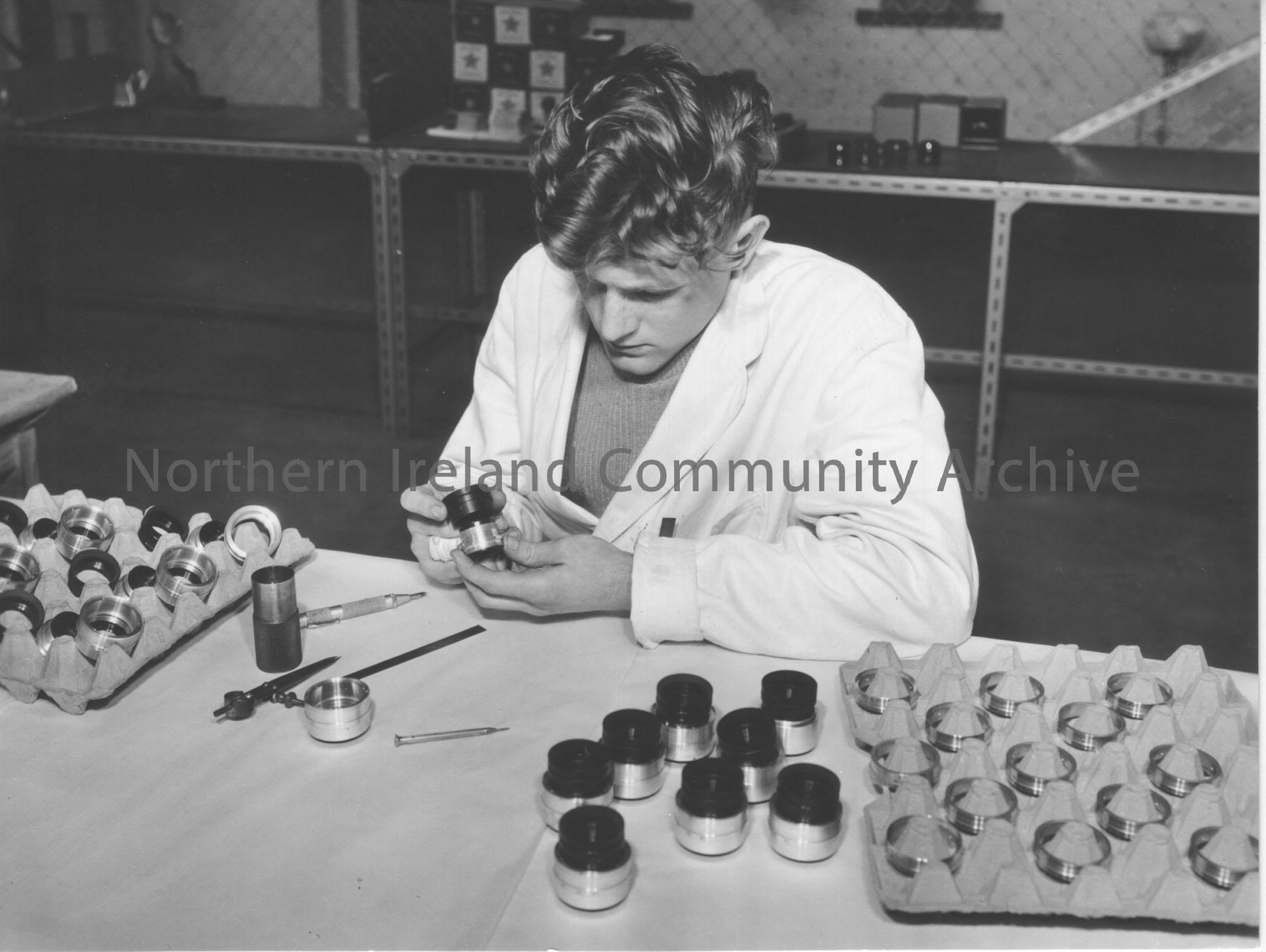 Photograph of fitting diaphragm rings-lens assembly-Ronnie L?