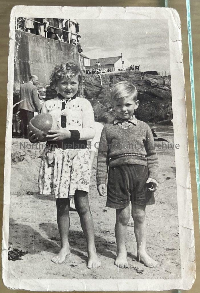 Photograph of Keith and Rosemary Browne at the beach, Portrush in 1954. Courtesy of Keith Browne.