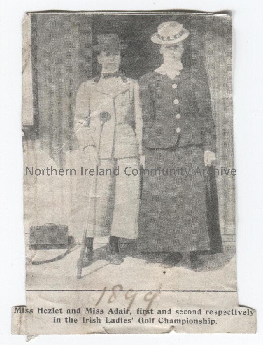Photograph of Miss Hezlet and Miss Adair, first and second respectively in the Irish Ladies’ Golf Championship. Handwritten – 1899.