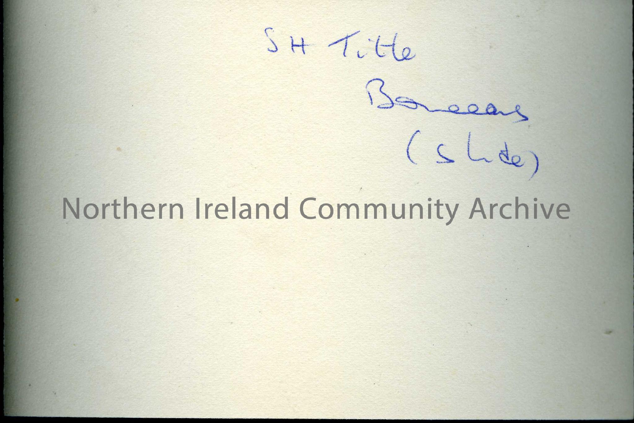 Photograph of some pigs. On the back is written S H Title ? slide. – Scan170