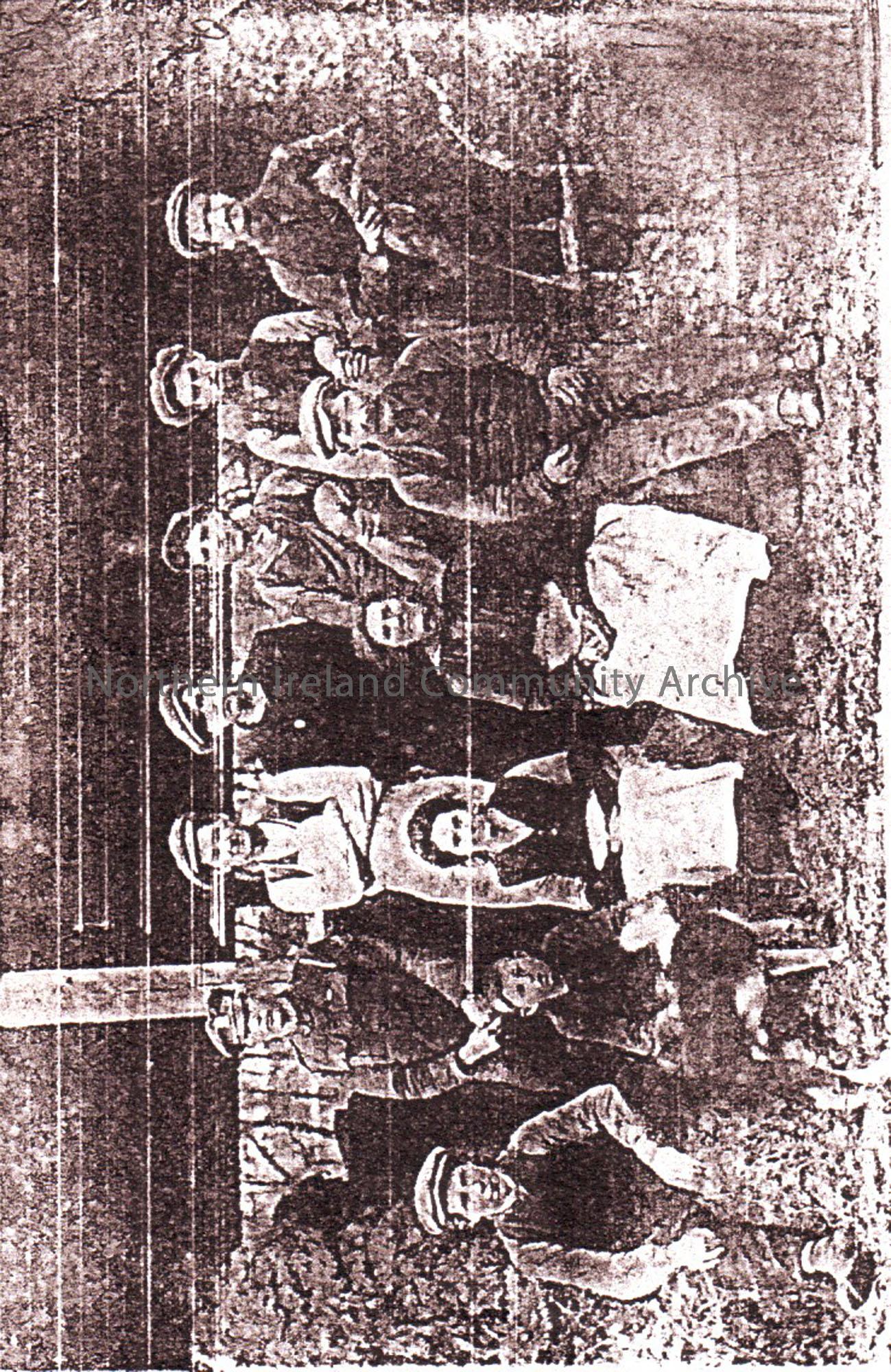 Photograph of workers at the Old Mill Dervock, during World War one.