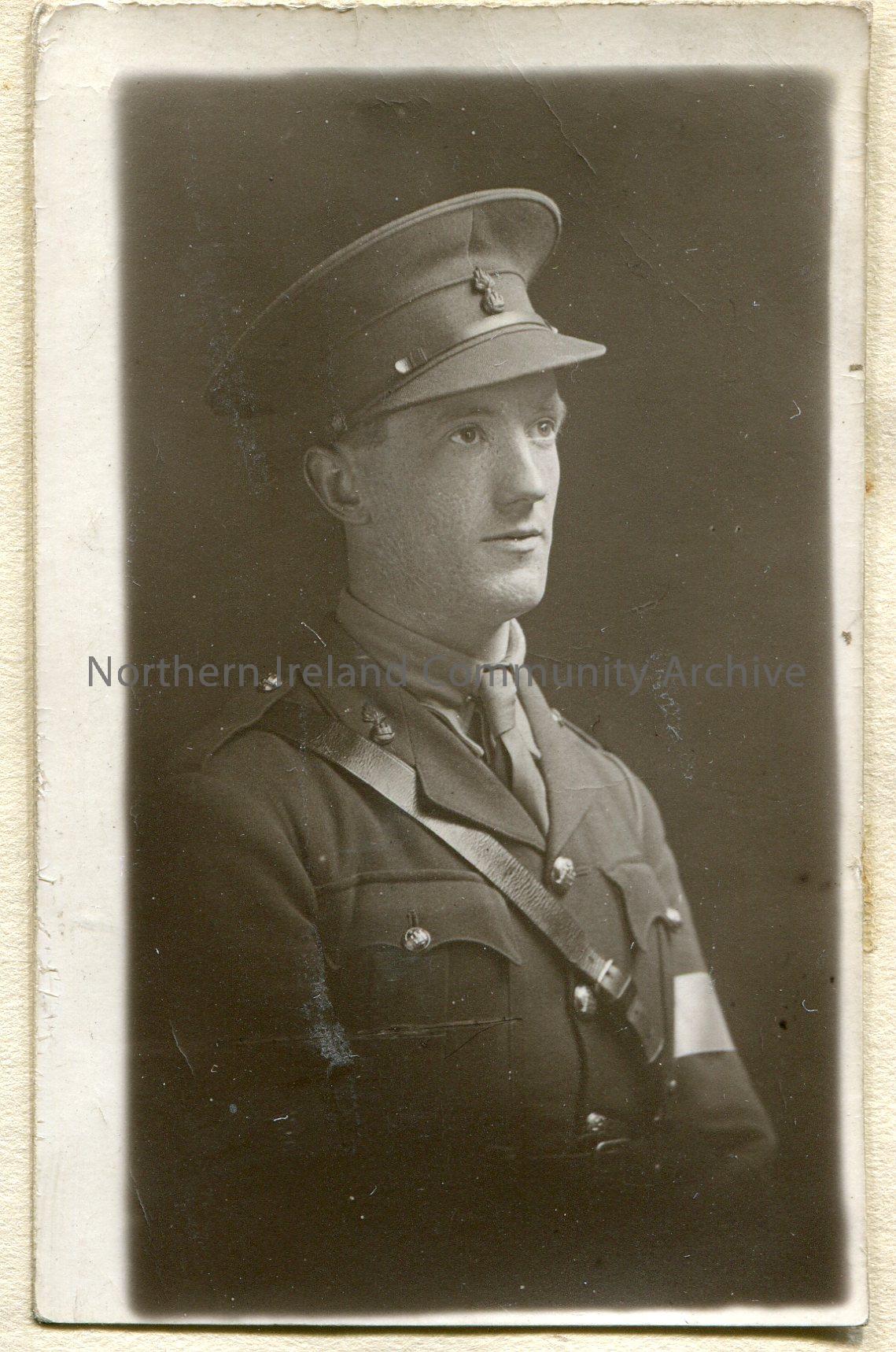 Photographic portrait image of a man wearing a military uniform. Dated 1918.