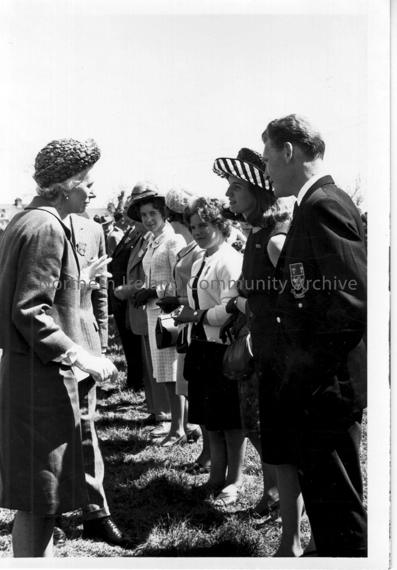 Photographic print of a line up of people to shake hands and meet