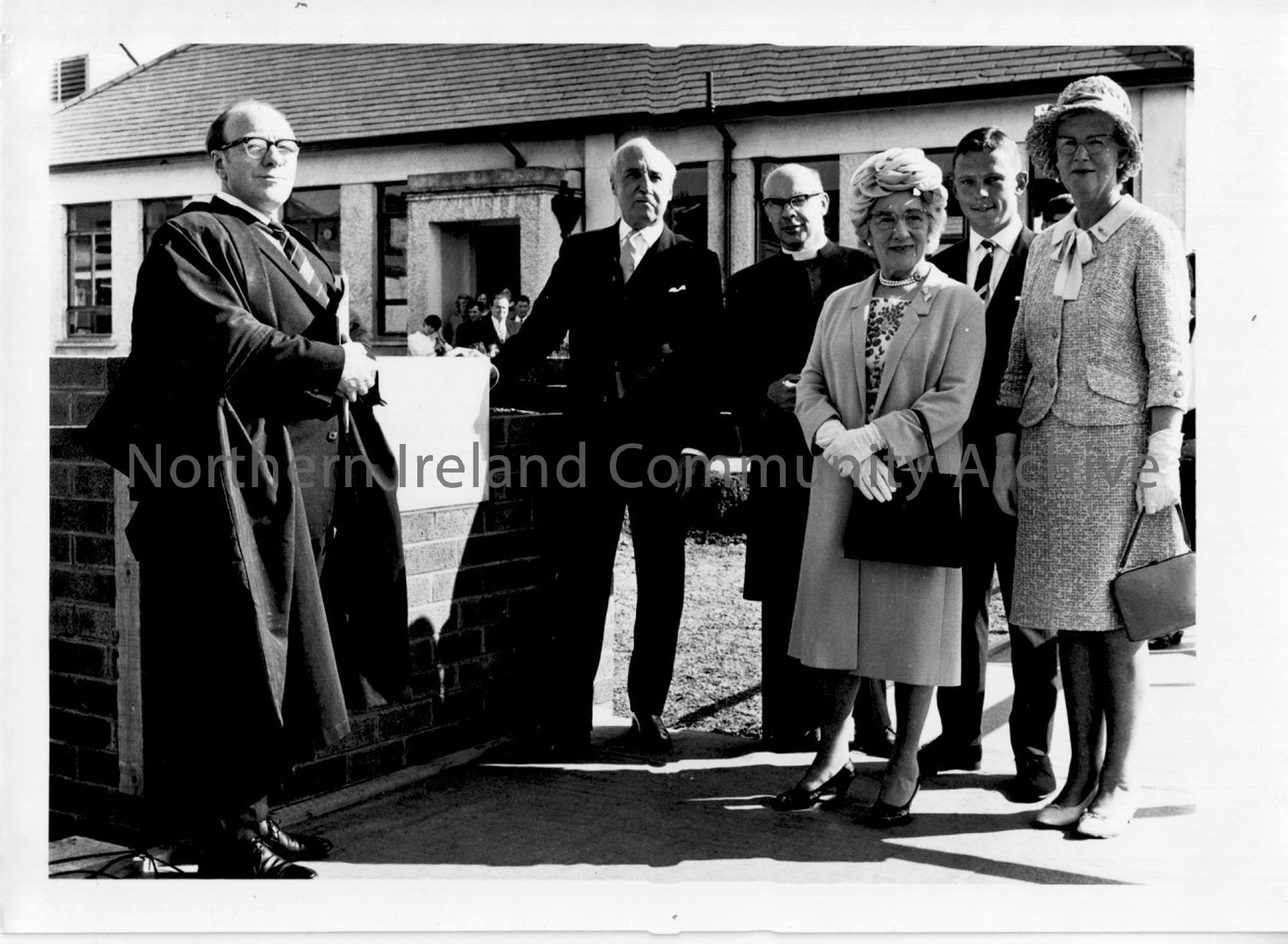Photographic print of Lord Erksine and Lady Erskine posing beside the plaque at Dalriada School