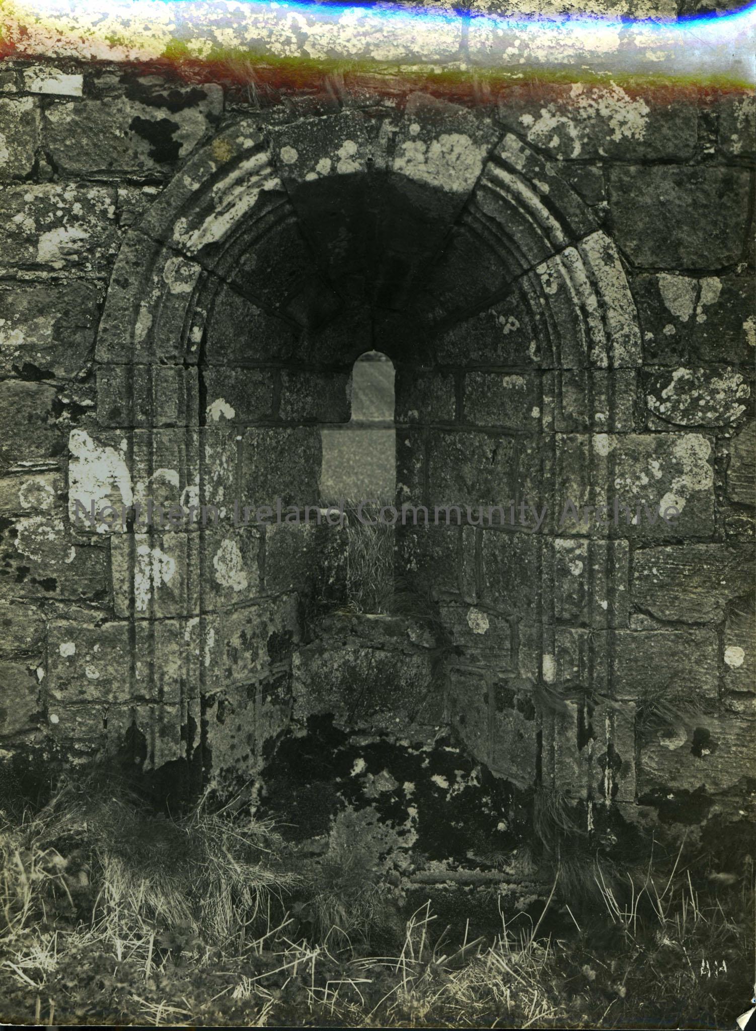 Photos of a window at Banagher Old Church. Written on the back is “To Sam Henry. Permission to reproduce is given by A R Hogg 27.9.1933.” – Scan151