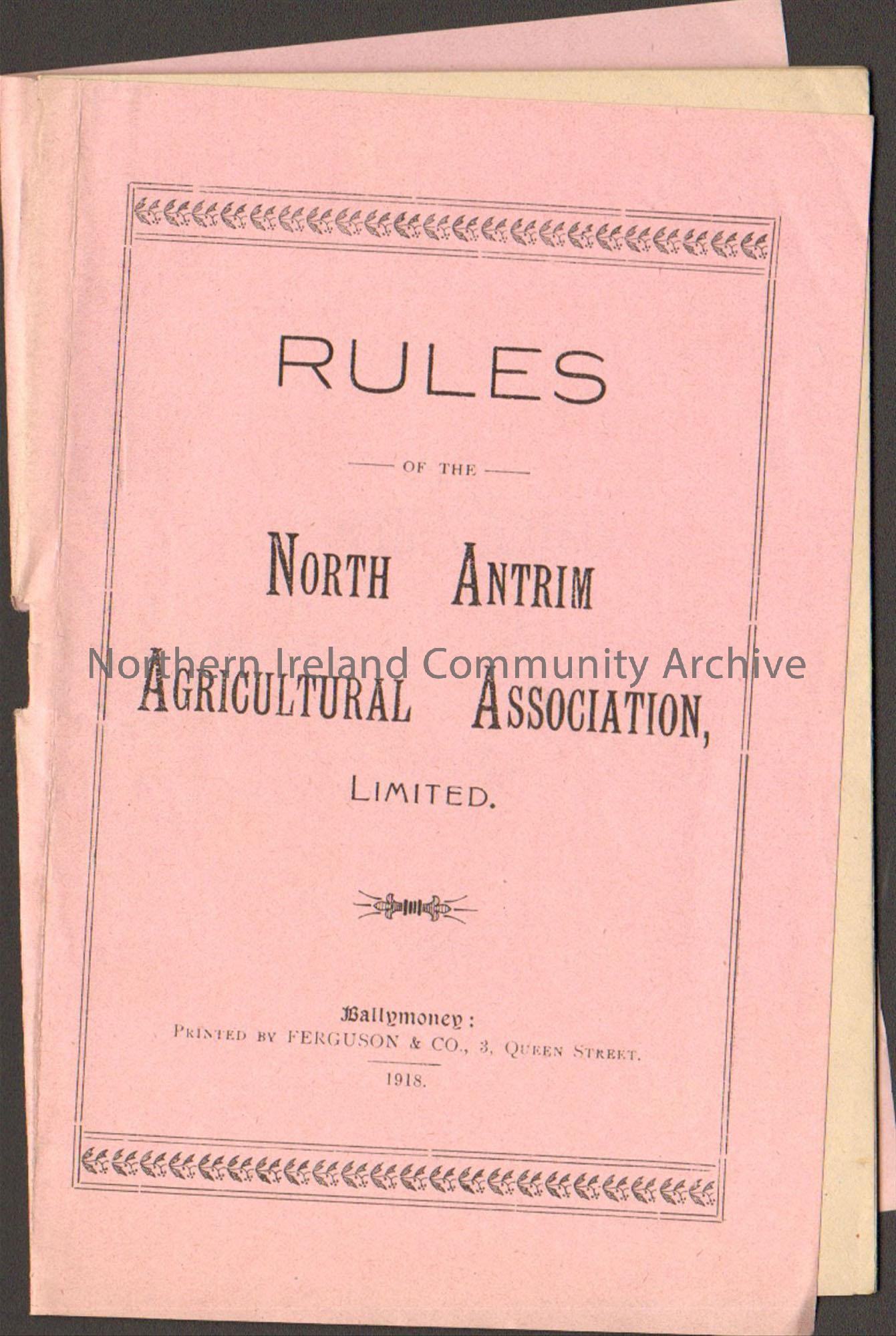 Pink booklet – “Rules of the North Antrim Agricultural Association, Limited”