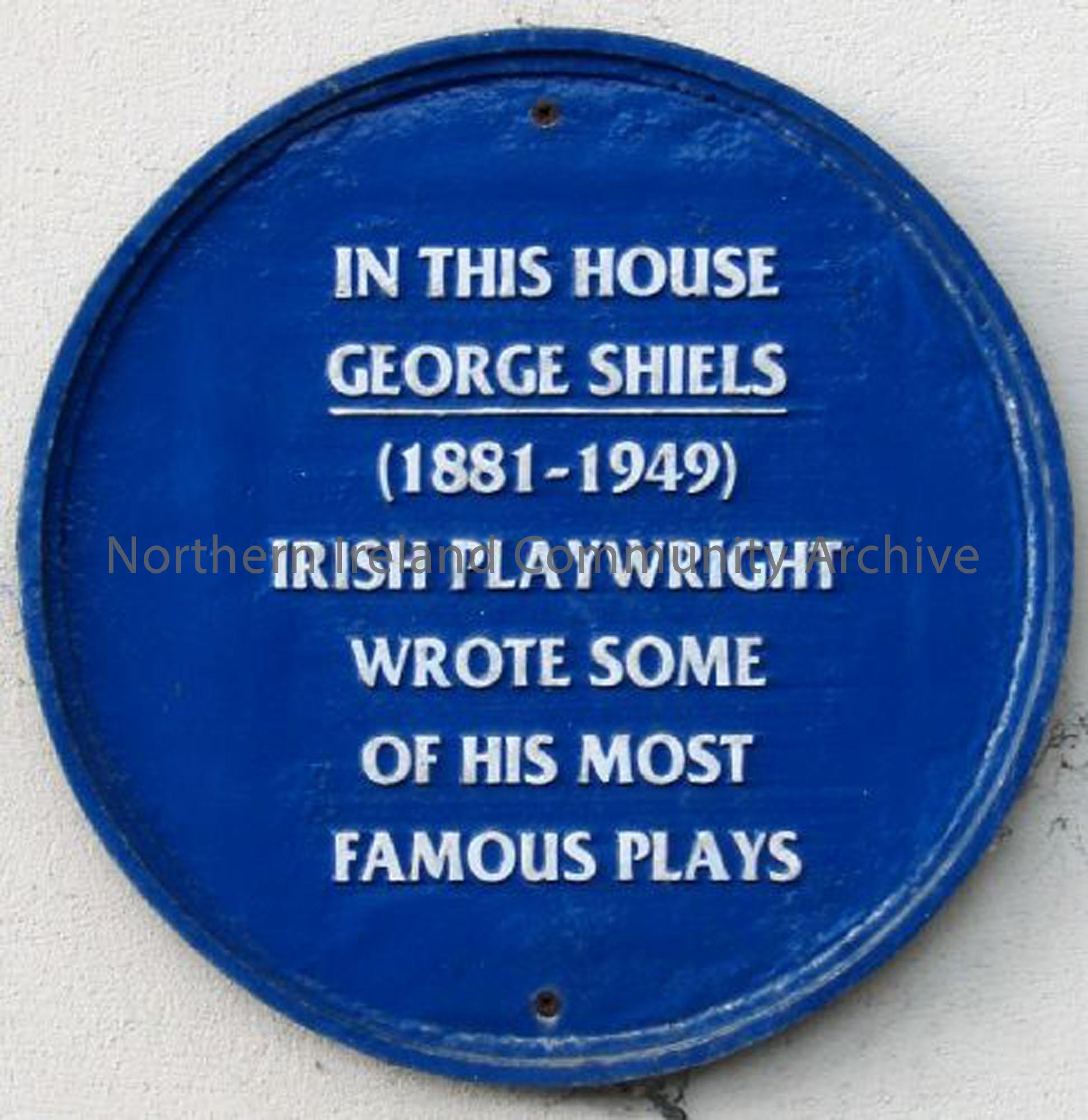 Plaque at George Shiels’ house (3340)