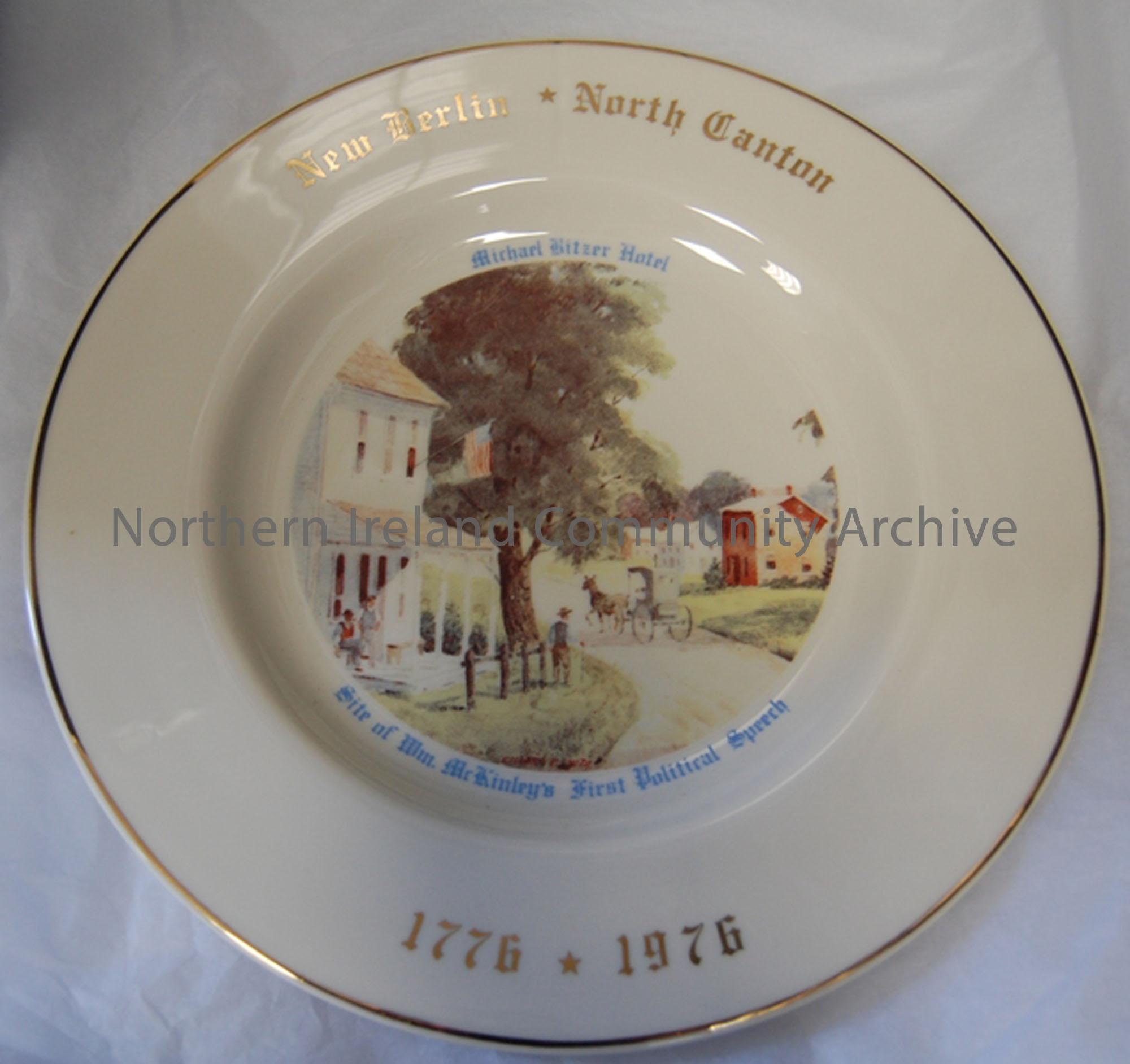 Plate' "New Berlin, North Carolina, Site of Wm McKinley's first political speech. 1776-1976" Limited edition 113075 by R&N China Co. Carrollton, Ohio.