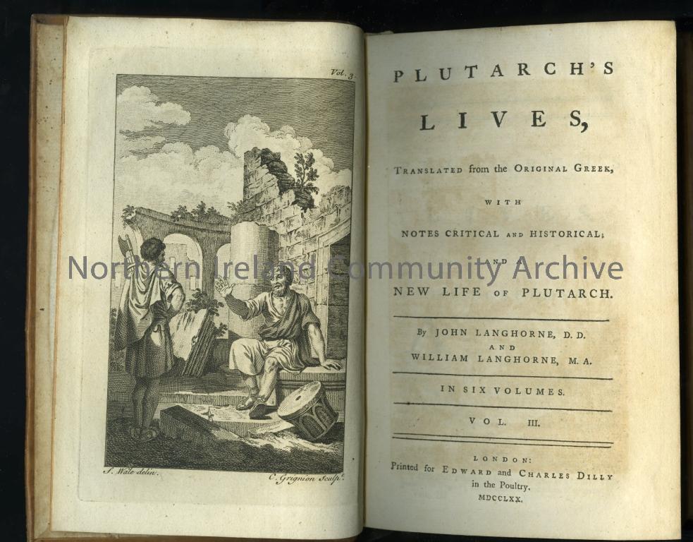 Plutarch’s Lives Translated from the original reek with notes critical and historical and a New Life of Plutarch. By John Langhorne, D.D and Willim Langhorne, M.A. In Six volumes Vol III. Printed for Edward and Charles Dilly, in the Poultry. 1770. Contain (4903)