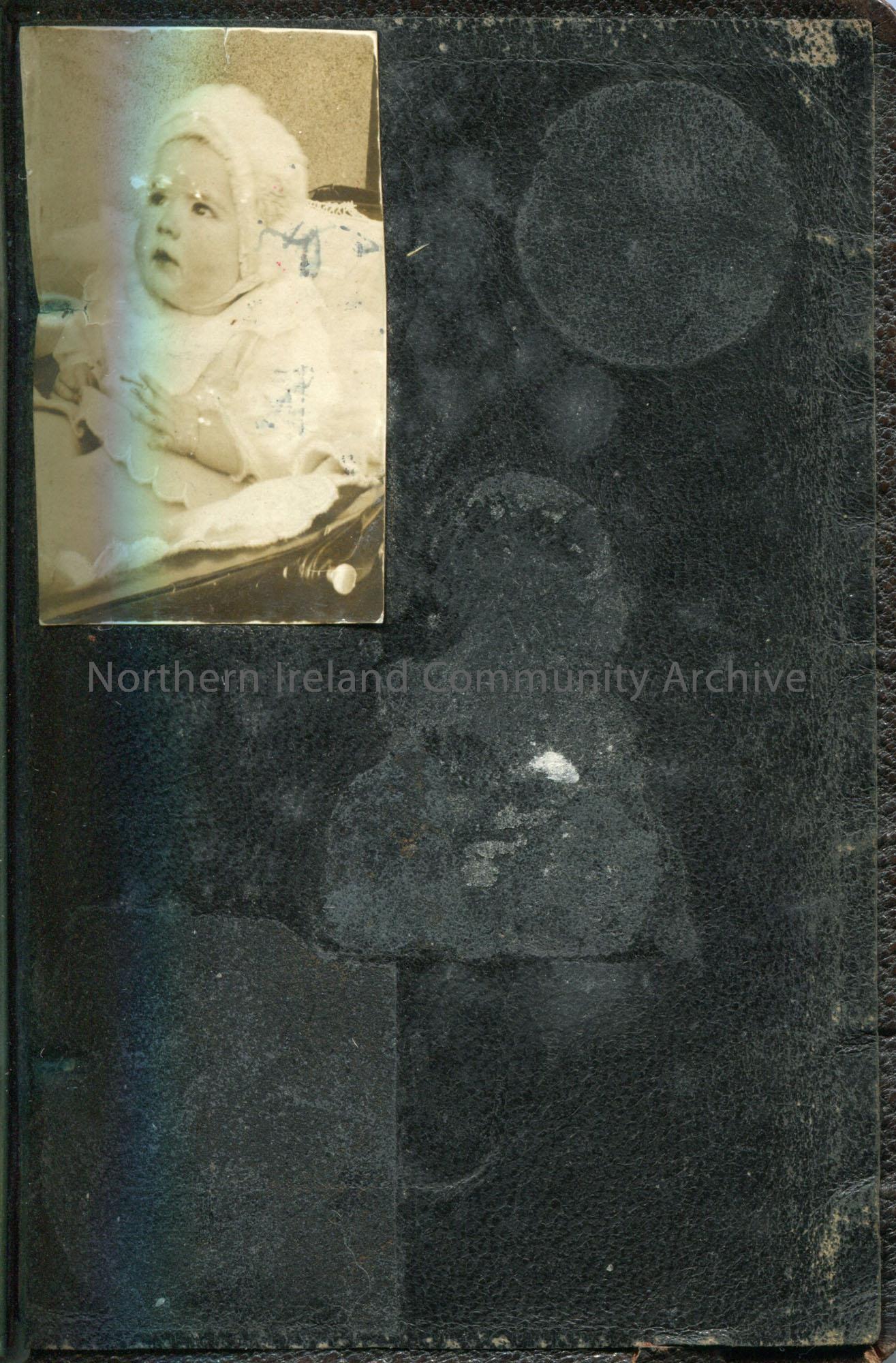 Pocket size ring binder with black cover. Pasted to inside cover, front and back are black and white photographs, mostly likely of Sam’s daughter Oliv… – scan013c