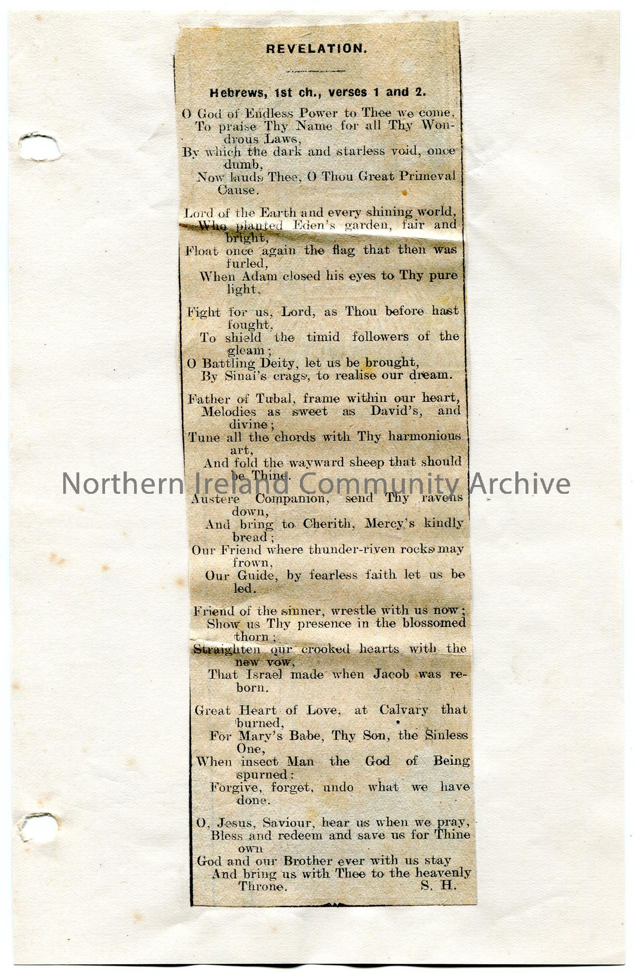 Poem cut from a newspaper titled, 'Relevation', by Sam Henry.