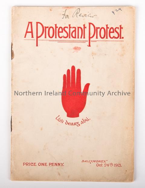 Political Pamphlet called "A Protestant Protest". Courtesy of Ballymoney Musuem.