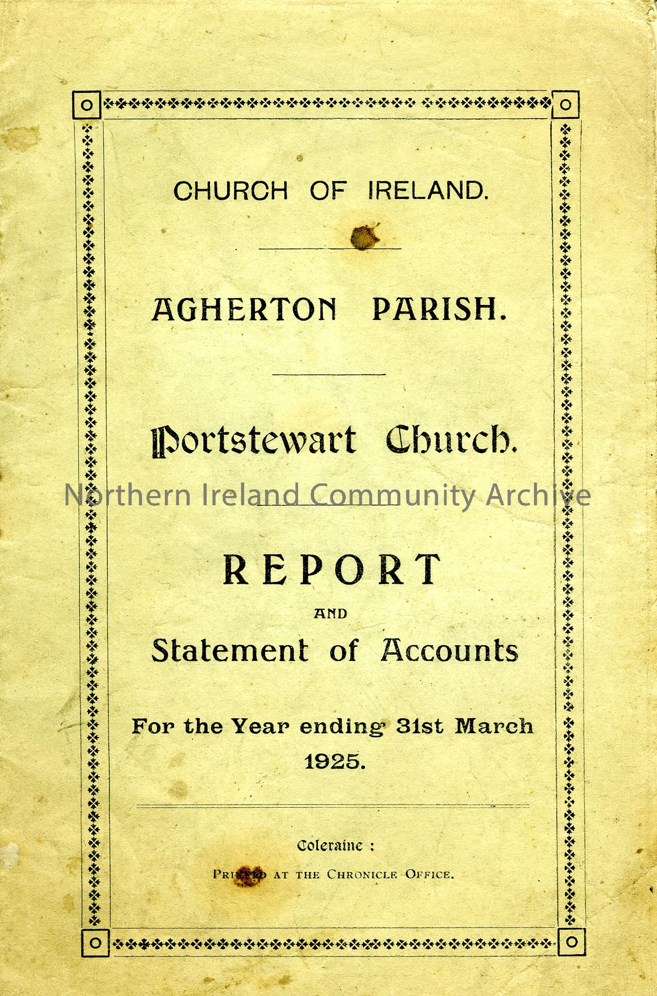 Portstewart Church,Report and statement of accounts for the year ending 31st March 1925
