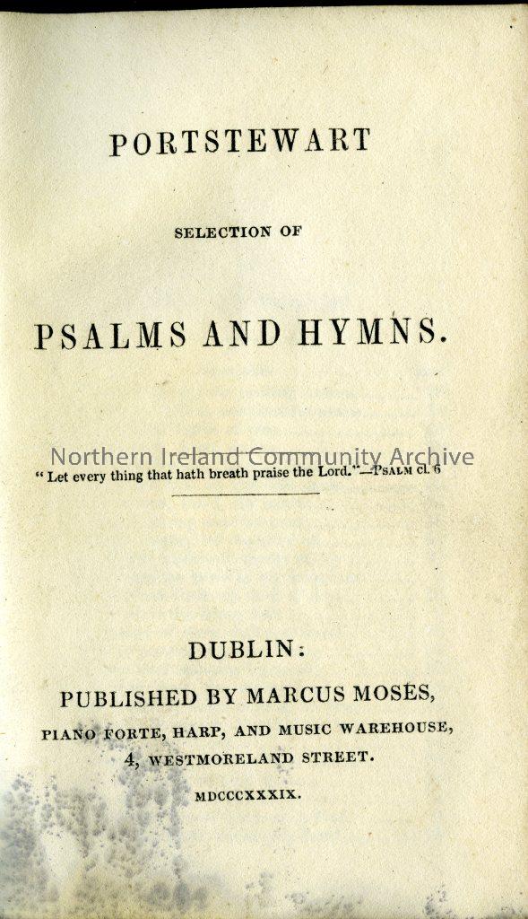 Portstewart Selection of Psalms and Hymns. A number of notes are made on the last 3 pages. Joh Cromie signature inside the cover (2090)