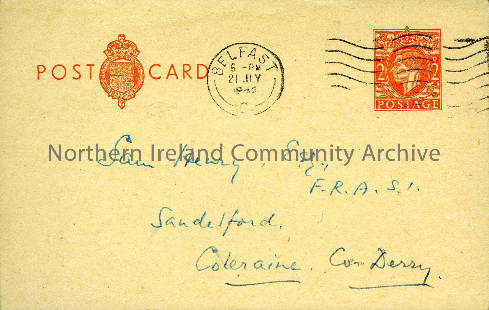 postcard addressed to Sam Henry, with words and music score of 1 line of a song on reverse – from Norman – 377_2B