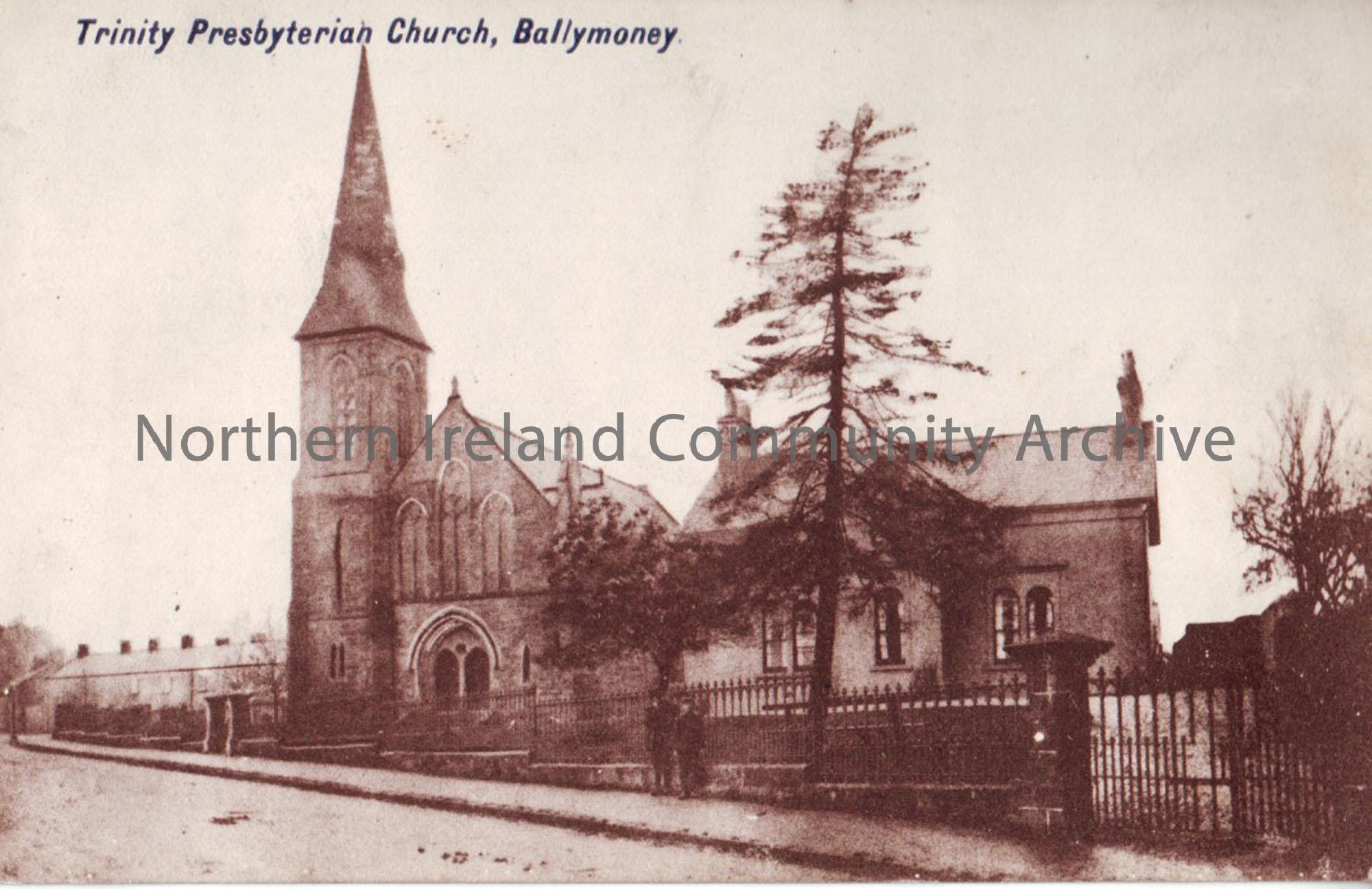 Postcard showing a photograph of Trinity Presbyterian Church, Ballymoney. With half penny stamp.