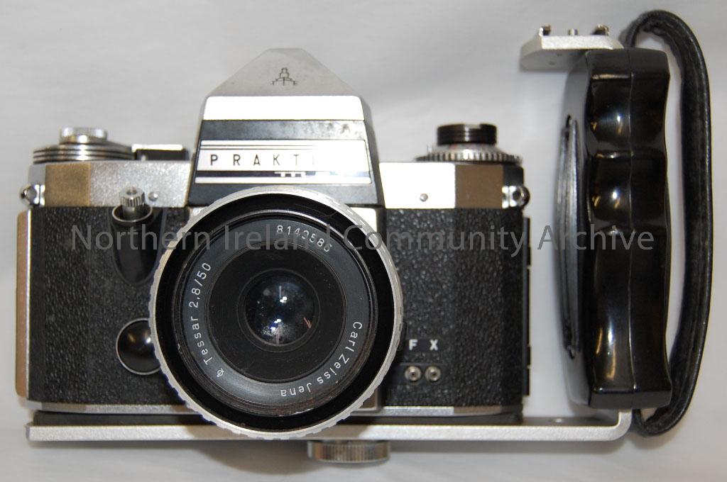 Practika Mat 35mm camera with flash attachment and black zipped bag. – 2010.382 (3)