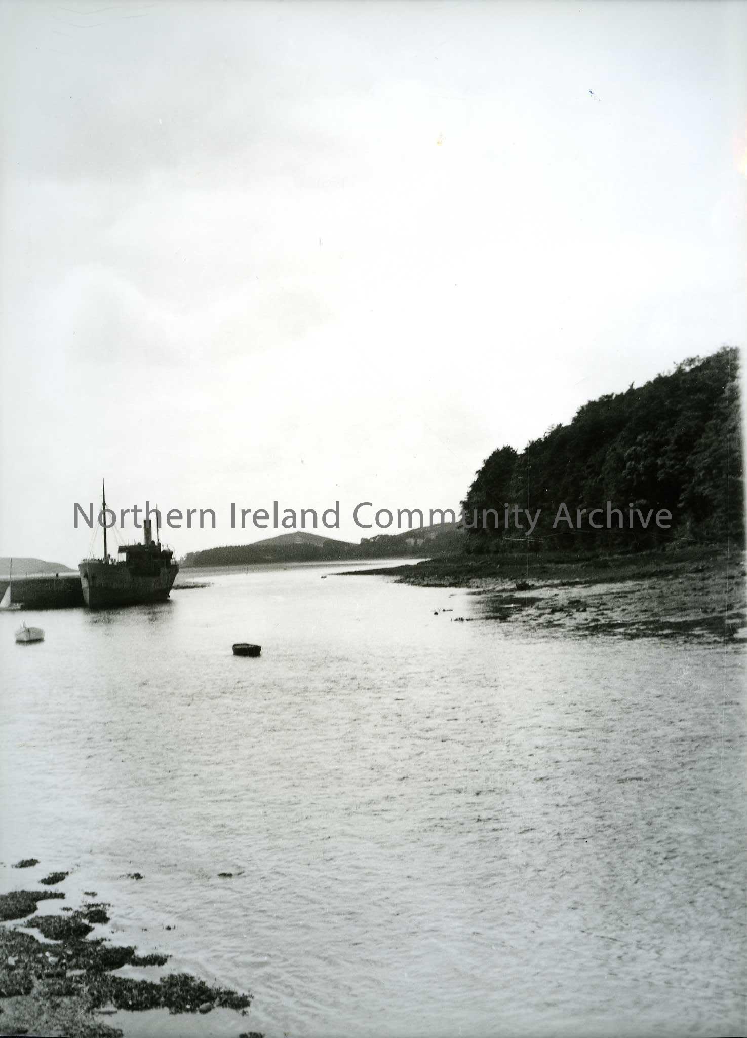 Printed black and white photograph – Water with a boat – Enniskillen Bay?