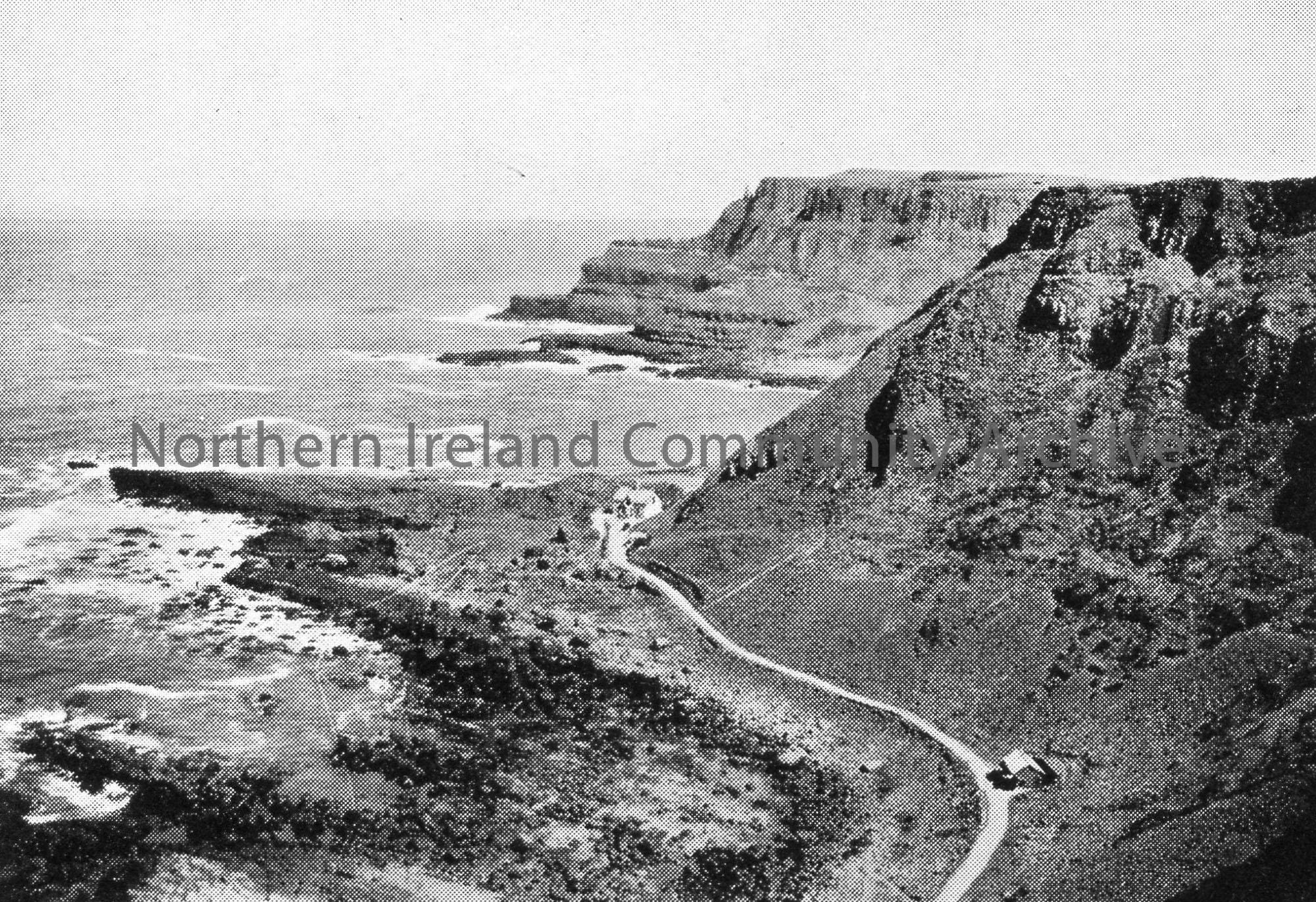 Printed black and white photographic image. Image of Giant's Causeway. Image used in Sam Henry's 'Dunluce and Giant's Causeway' book - CM:2011:518 on page 51. Captioned, 'The Causeway Path'.