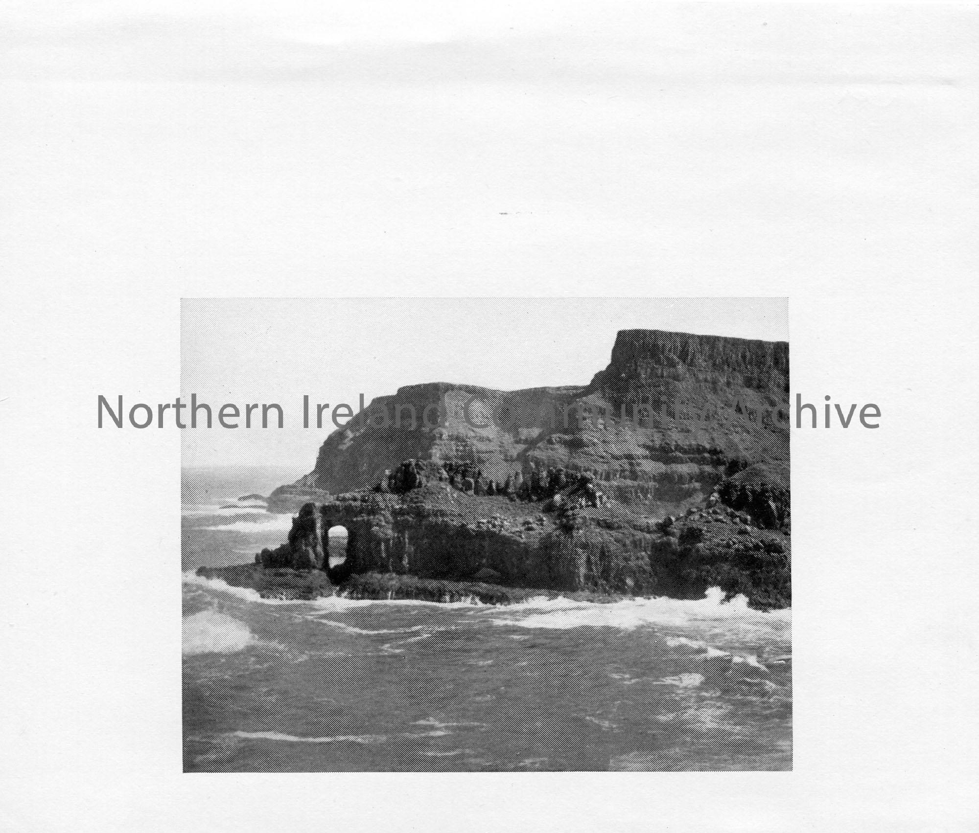Printed black and white photographic image. Image of the inside of the Giant's Causeway. Used in Sam Henry's 'Dunluce and Giant's Causeway' book - CM:2011:518 on page 66. Captioned, 'The Giant's Eyeglass'.