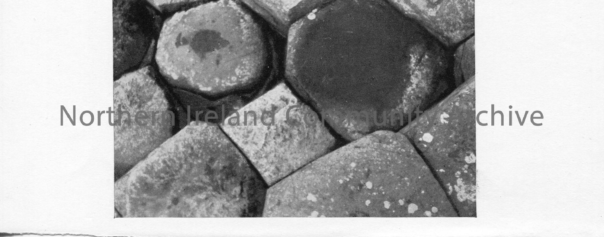 Printed black and white photographic image. Used in Sam Henry's book 'Dunluce and Giant's Causeway' - CM:2011:518 on page 55. It is captioned as 'The Diamond. (A rare four-sided form)'.