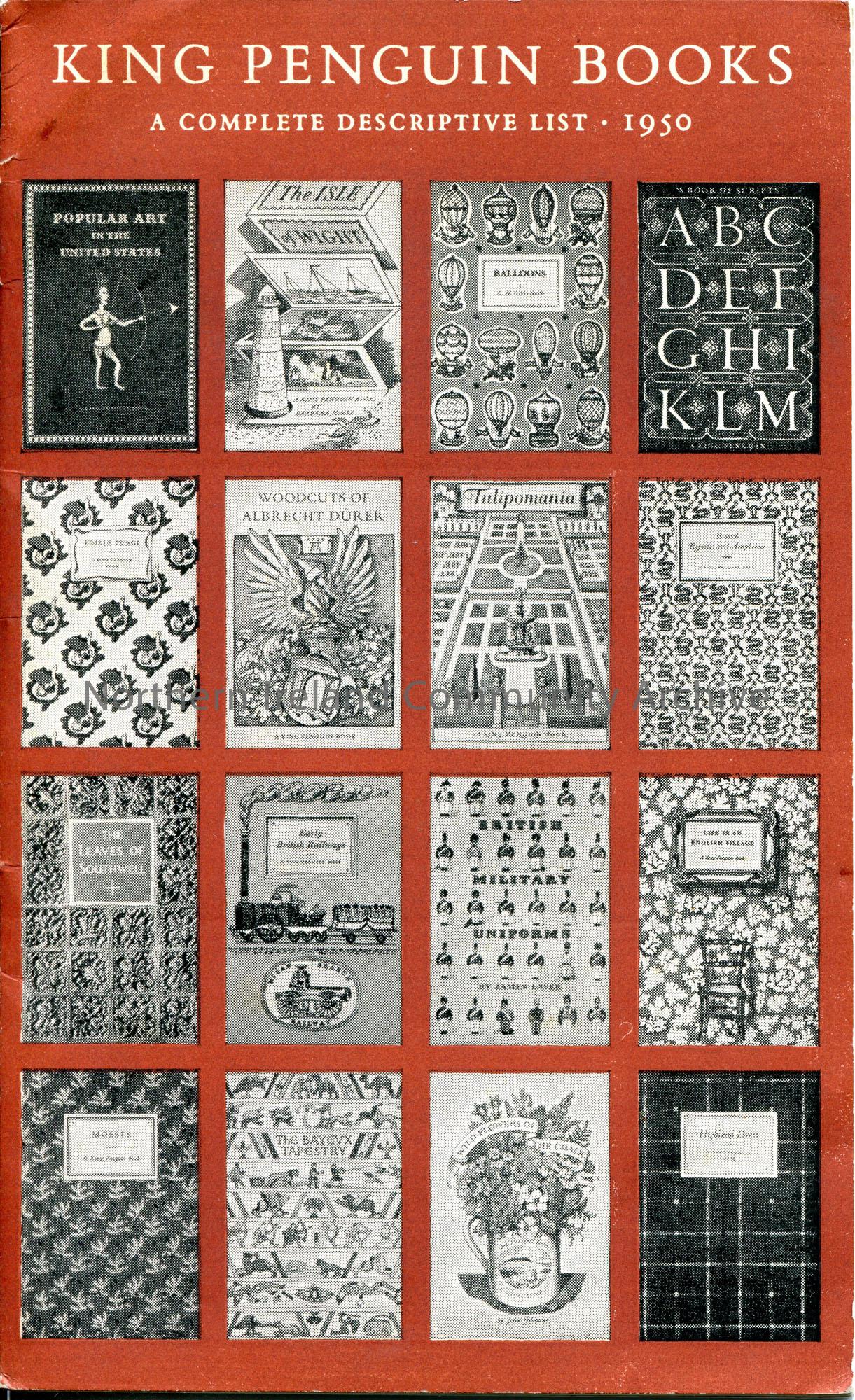 Printed booklet titled, ‘King Penguin Books. A Complete Descriptive List. 1950’. Brown colour cover with the images of 16 books on front and back cove…