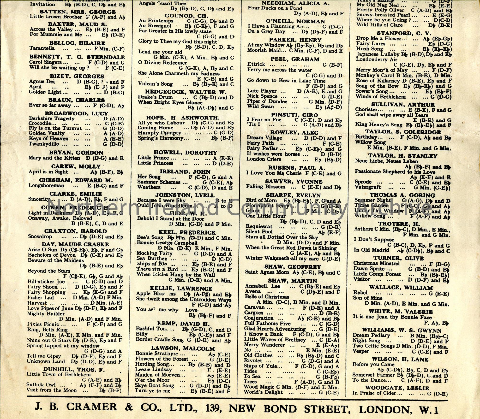 Printed booklet titled, ‘Songs of the Western Isles. Poems by Harold Bouiton, Music by Granville Bantock’. Words and music to ‘Song to the Seals’. Lis… – scan014c