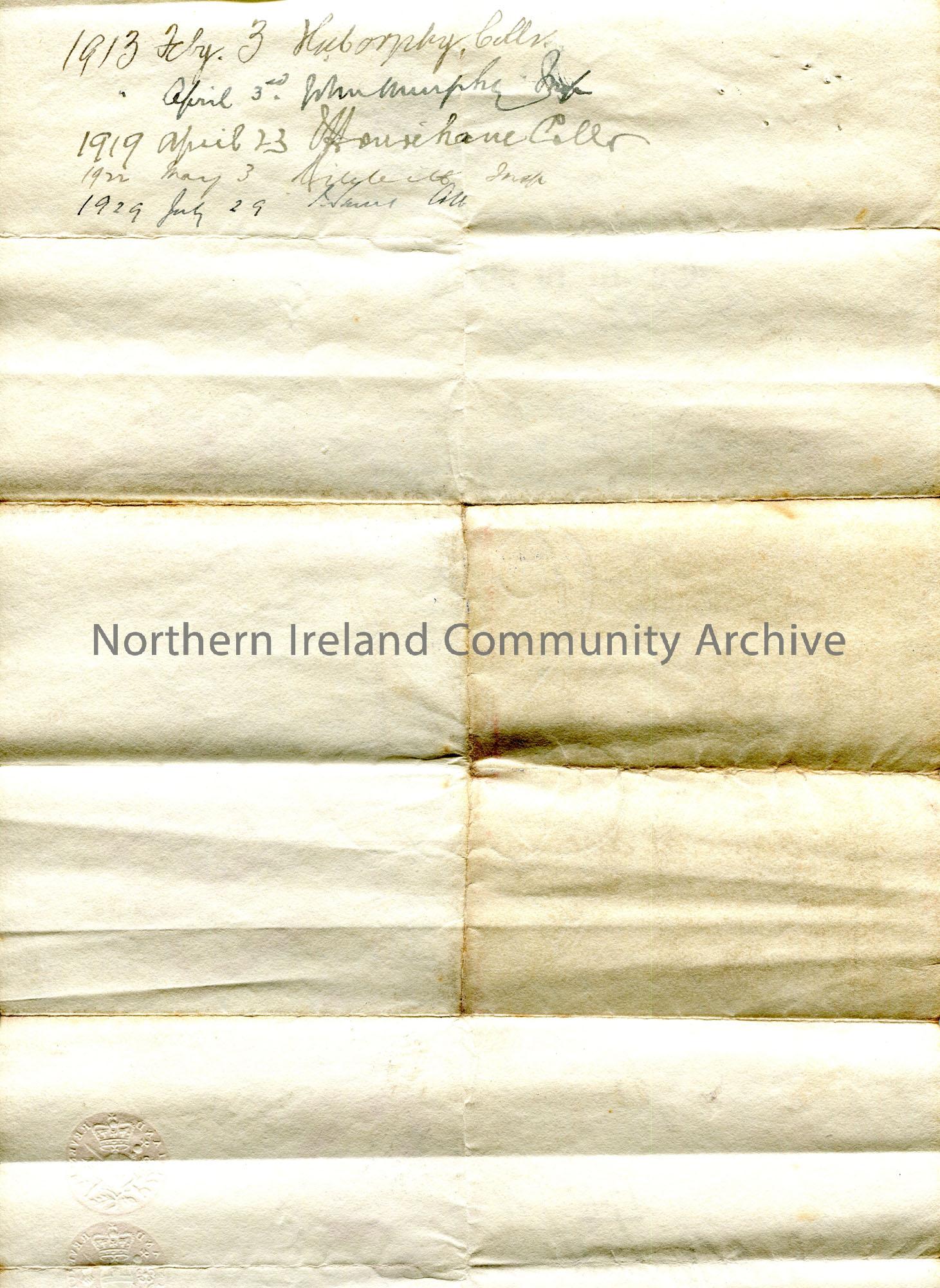 Printed document for the appointment of Samuel Henry as an Officer of the Inland Revenue on 18th March, 1898. Signed by two Commissioners of the Inland Revenue - J N Murray and Edmund ? Entered in C. B. No. 174 by C. A. Barrett, Ref of Secs. Two red 'CANCELLED' stamps over document. Handwritten dates and names on left margin and on reverse 1898-1929.