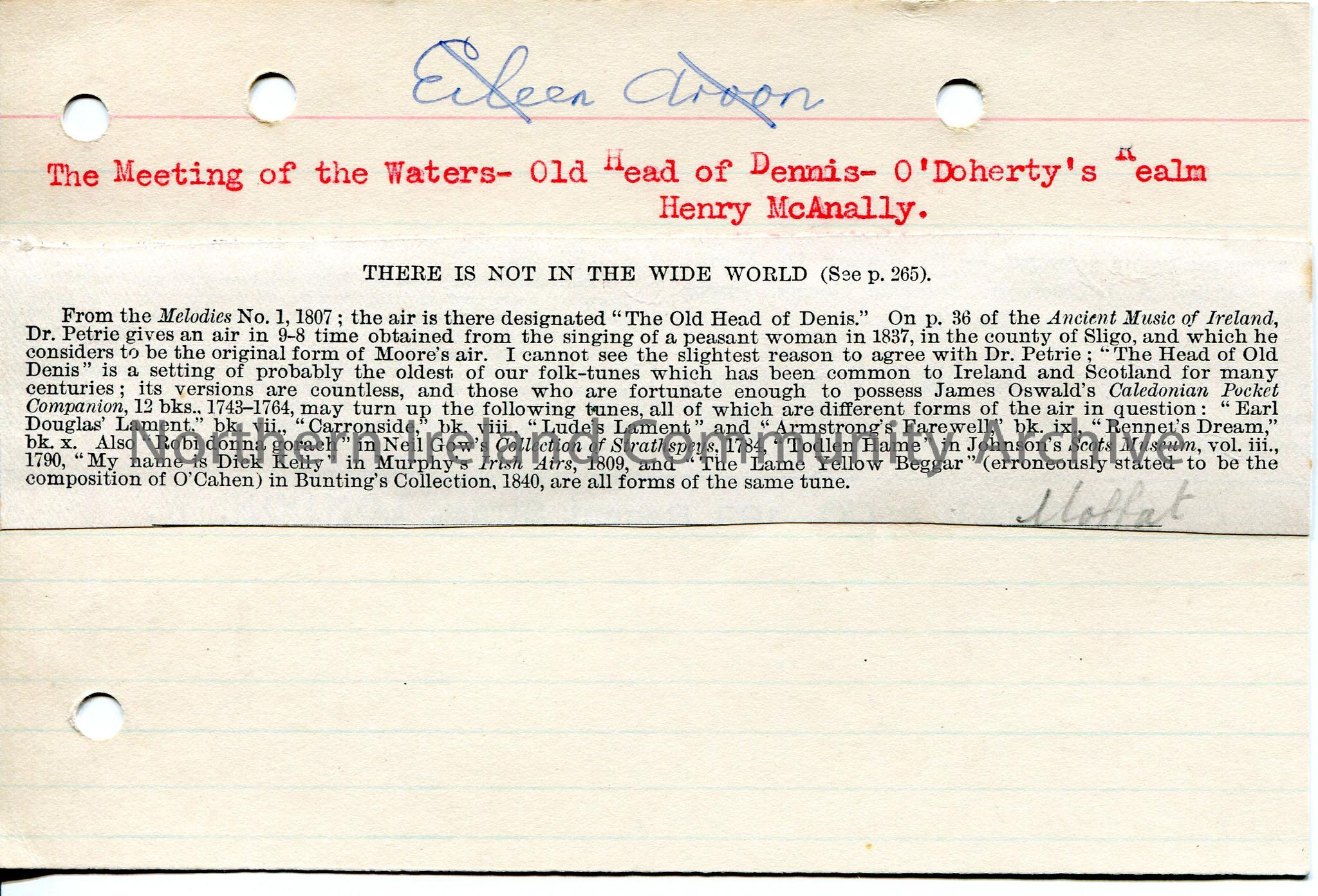 Printed item affixed to page – information and disagreement as to origin and description of air ‘The Old Head of Dennis’.