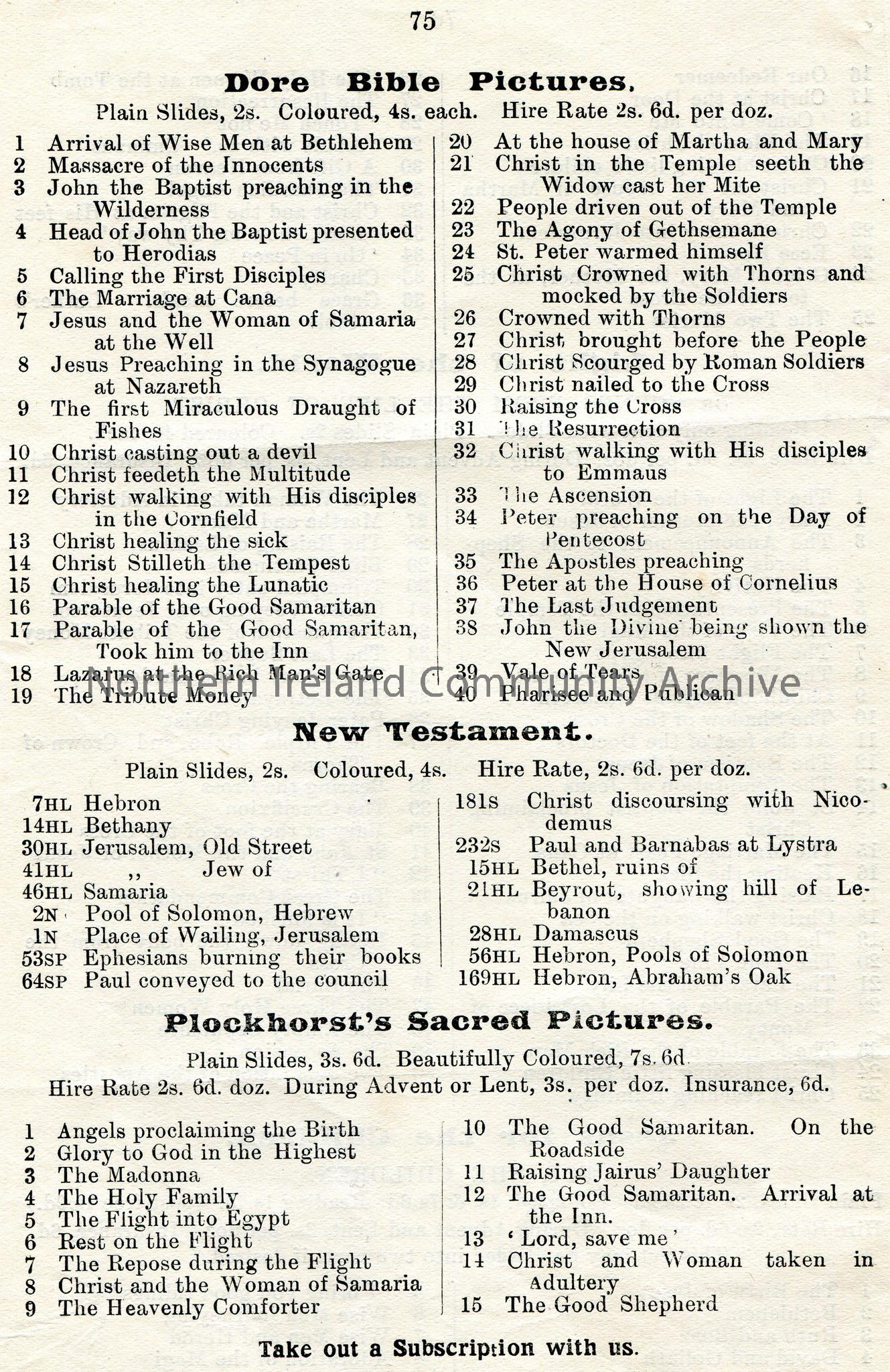 Printed page which appears to have been cut from a book of lists of slides from lectures. A red X has been marked against slides re 'Light of the World' lecture.