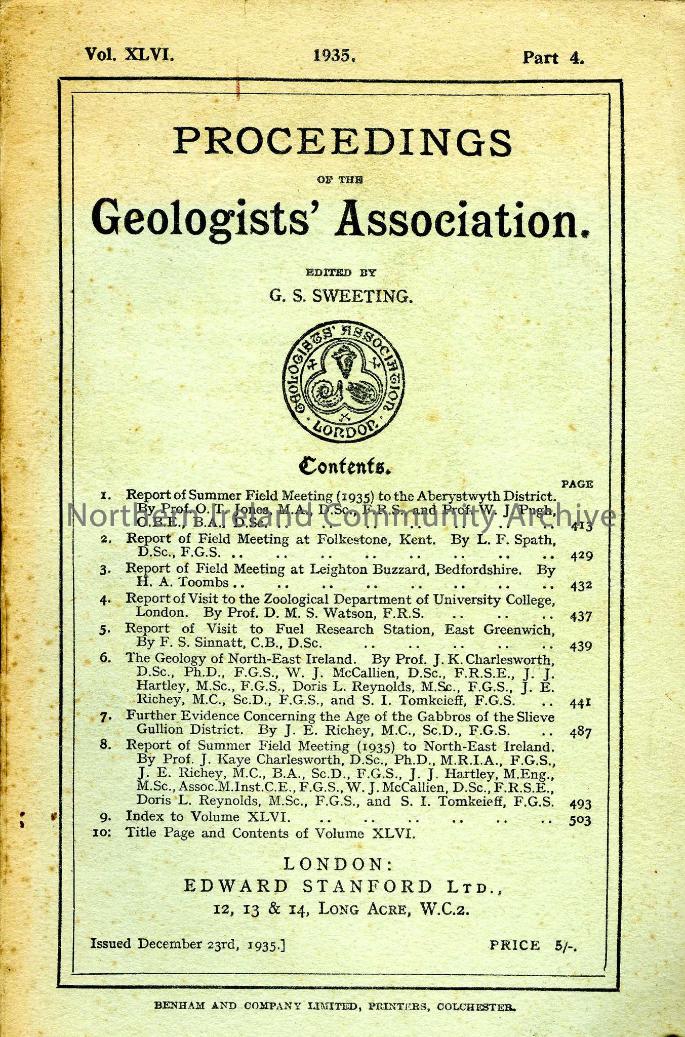 Proceedings of the Geologists' Association - includes The Geology of North East Ireland and Summer Field Meeting North East Ireland