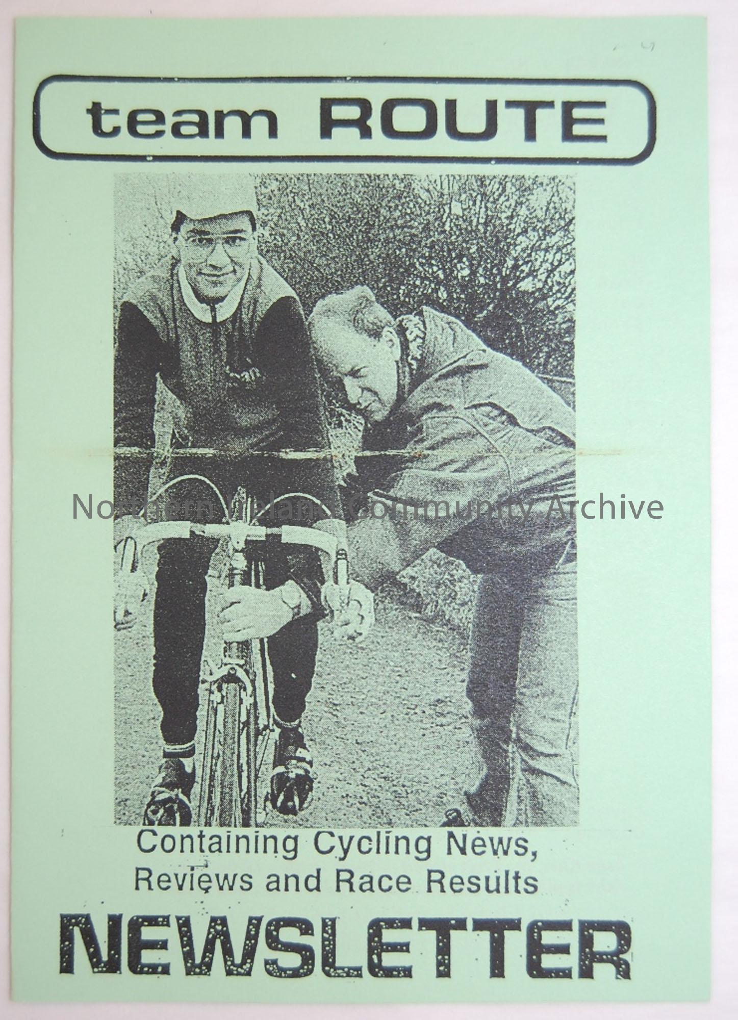 Produced copy of the Team Route Newsletter March/May. Magazine of the Ballymoney and district cycle club containing cycling news, reviews and race results.