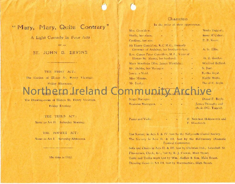 Programme Ballymoney Literary and Debating Society, December 14th, 1934. Signed by members of the cast