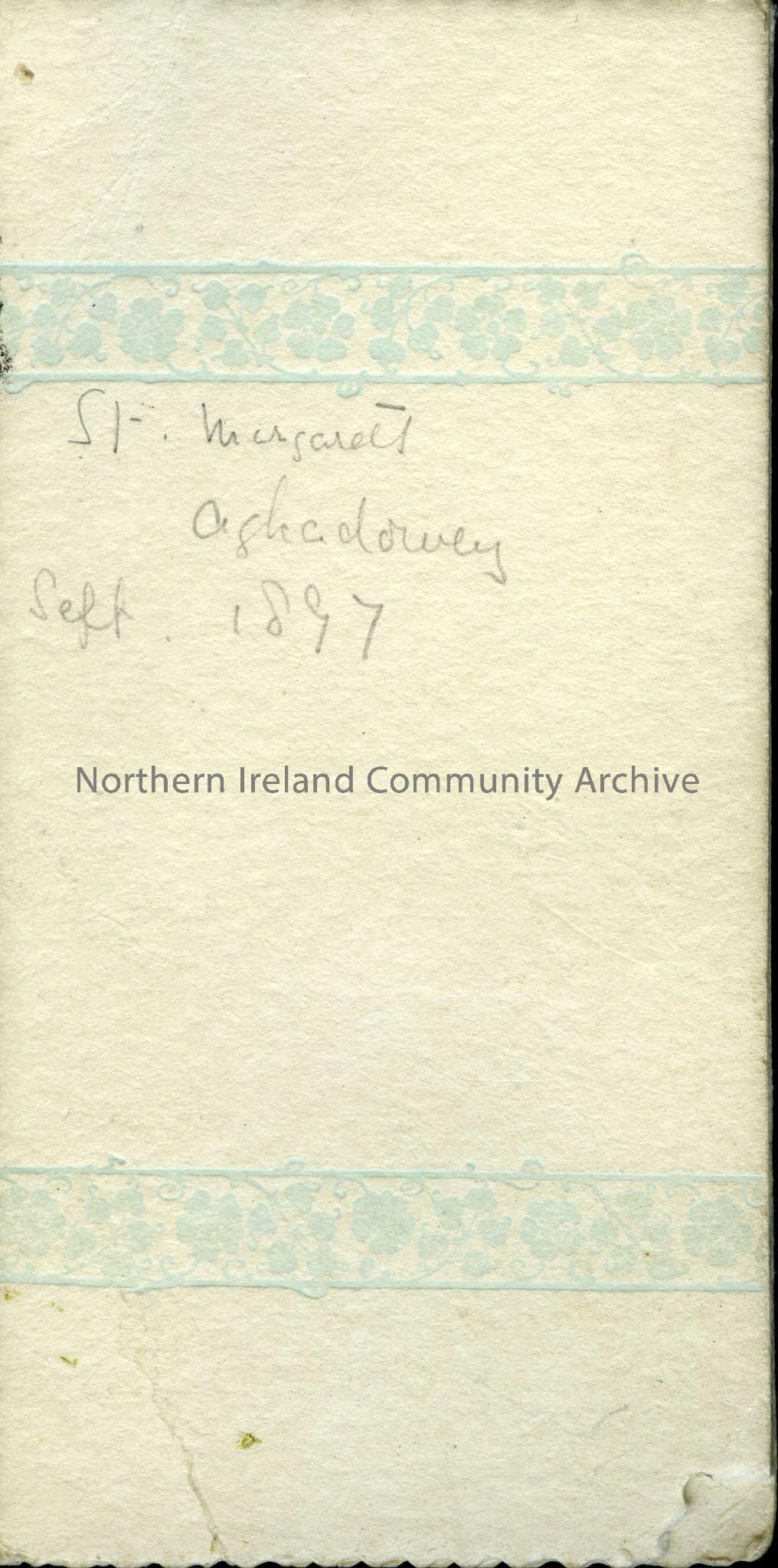 Programme for a dance held at St. Margaret's, Aghadowey in September 1897. St. Margaret's was the Rectory for St. Guaires Church of Ireland. Names inside.