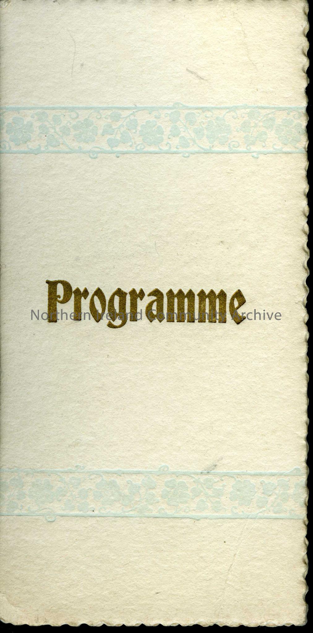 Programme for a dance held at St. Margaret’s, Aghadowey in September 1897. St. Margaret’s was the Rectory for St. Guaires Church of Ireland. Names in…