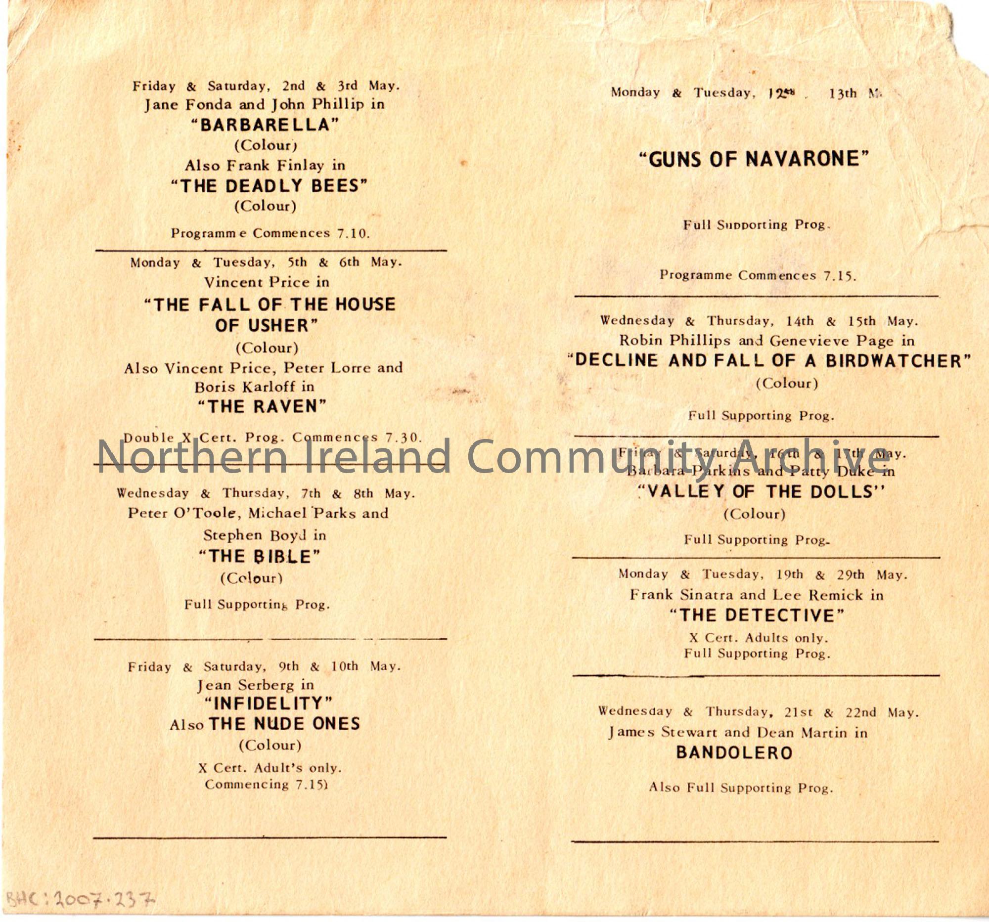 Programme from the Palladium Cinema Ballymoney, May, 1969