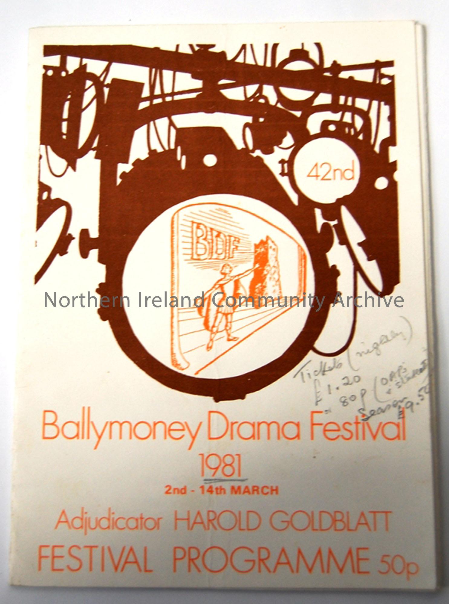 Programme of 42nd Ballymoney Drama Festival,1981 2nd- 14th March, Adjudicator Harold Goldblatt