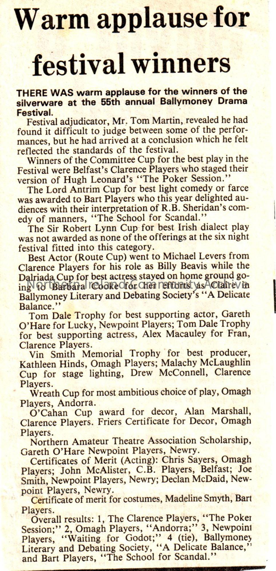 Programme of 55th Ballymoney Drama Festival,1994 5th to 11th March