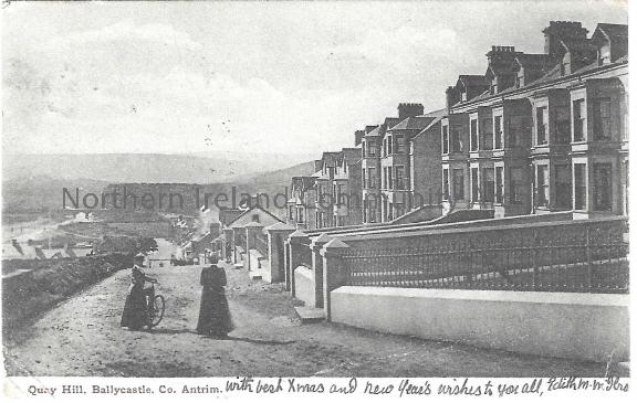 An old postcard depicting Quay Hill, Ballycastle.