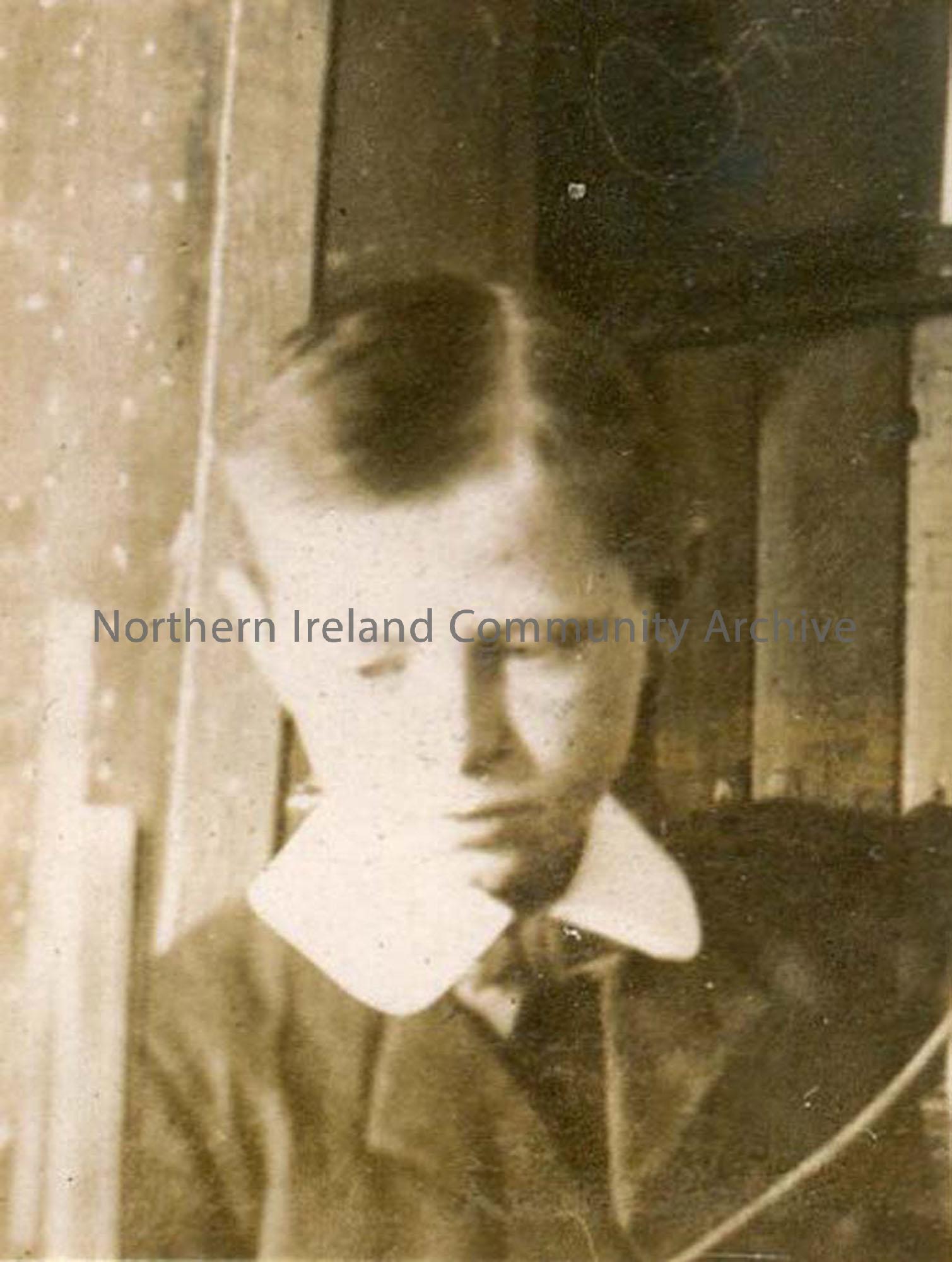 Black and white photographic image of a boy captioned 'R. McDermott'.