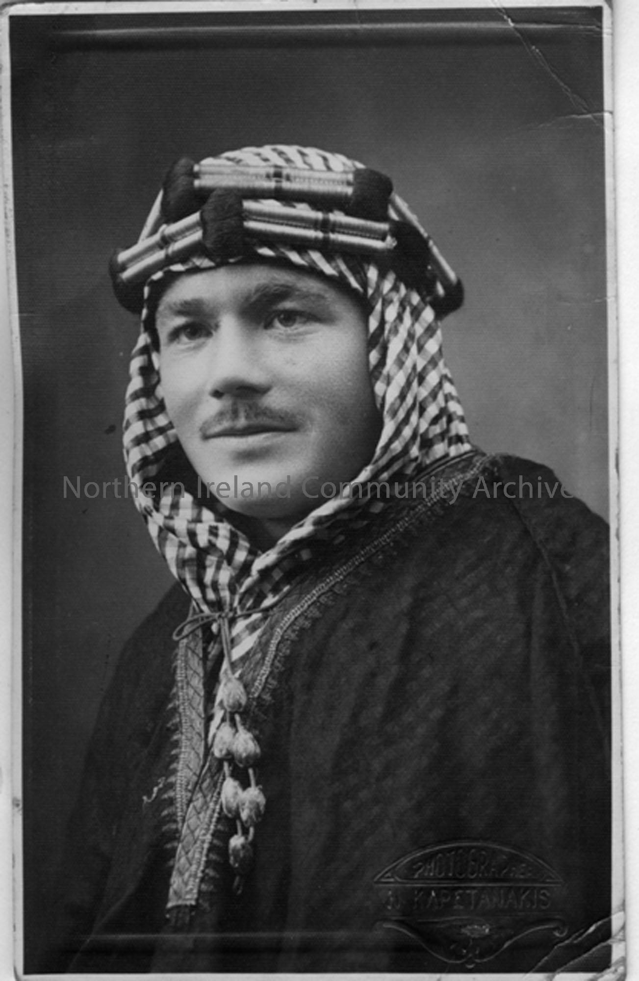R McDonald in Arab attire and head dress.